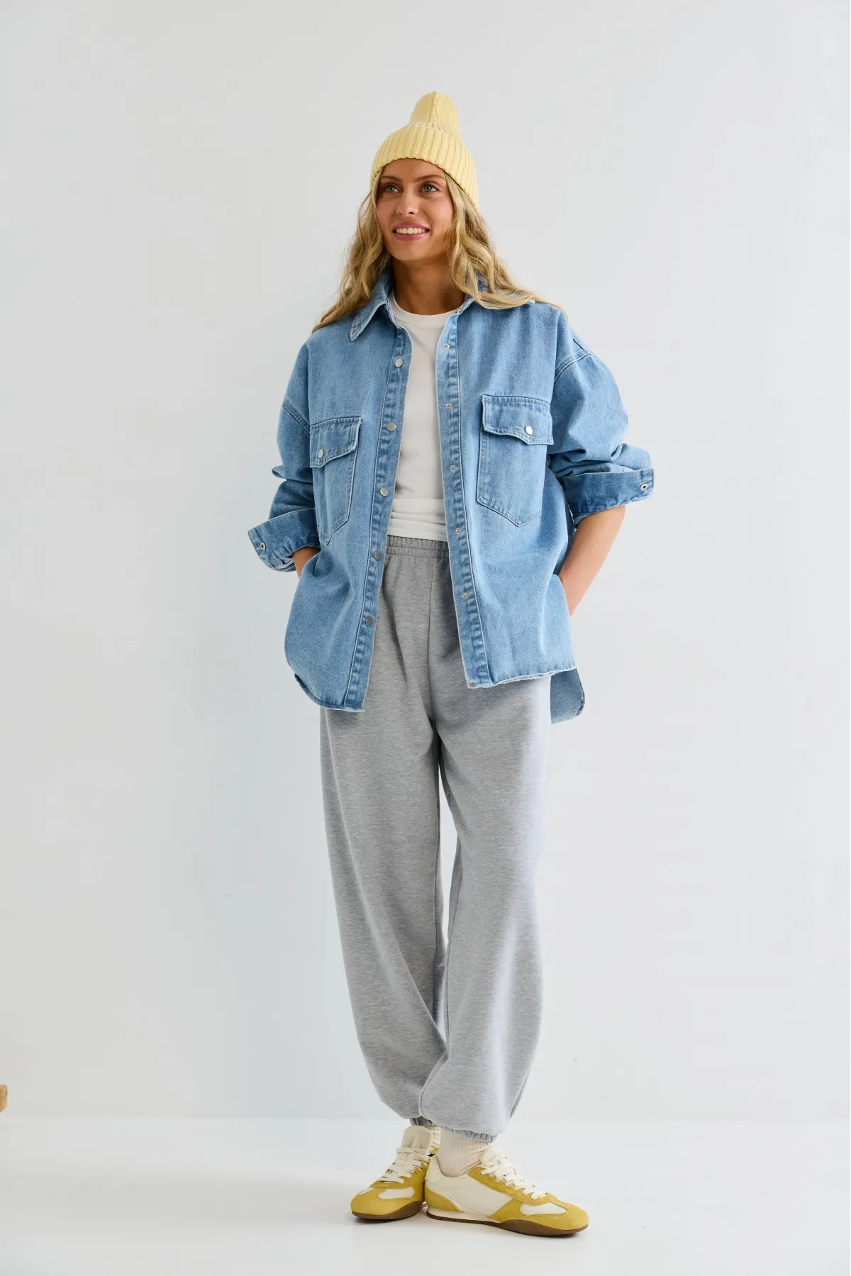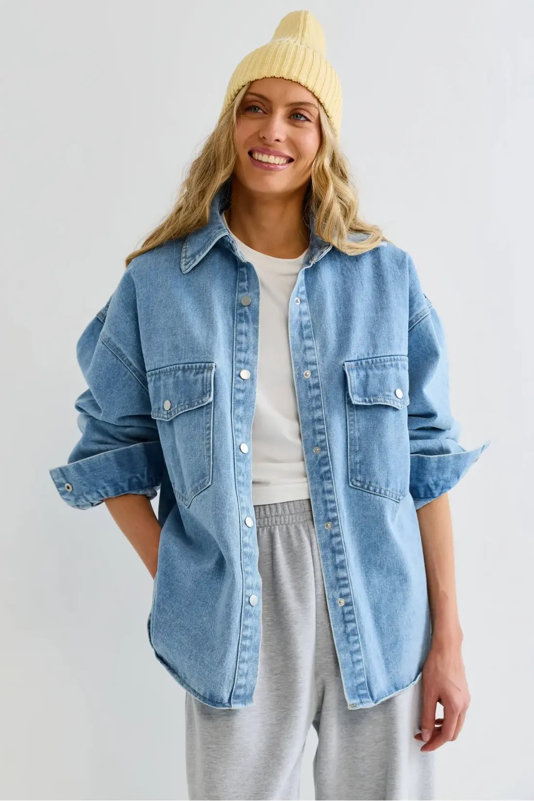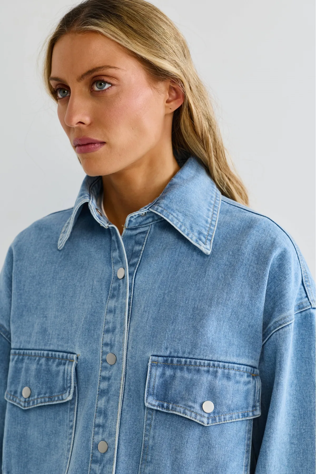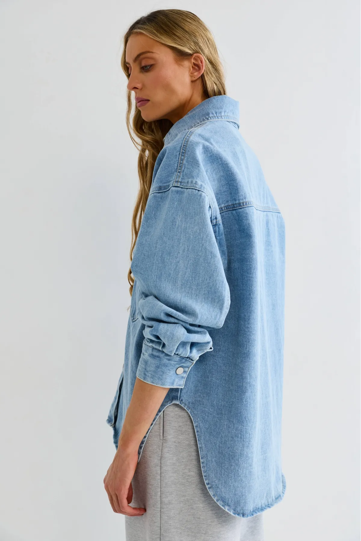 Лаконичная и выразительная базовая вещь. Плотный деним придаёт структуру и держит форму, делая рубашку практичной и долговечной. Широкие манжеты дают свободу стайлинга — их можно подвернуть для более небрежного образа. Два нагрудных кармана напоминают классический рабочий силуэт и полезны для мелочей.