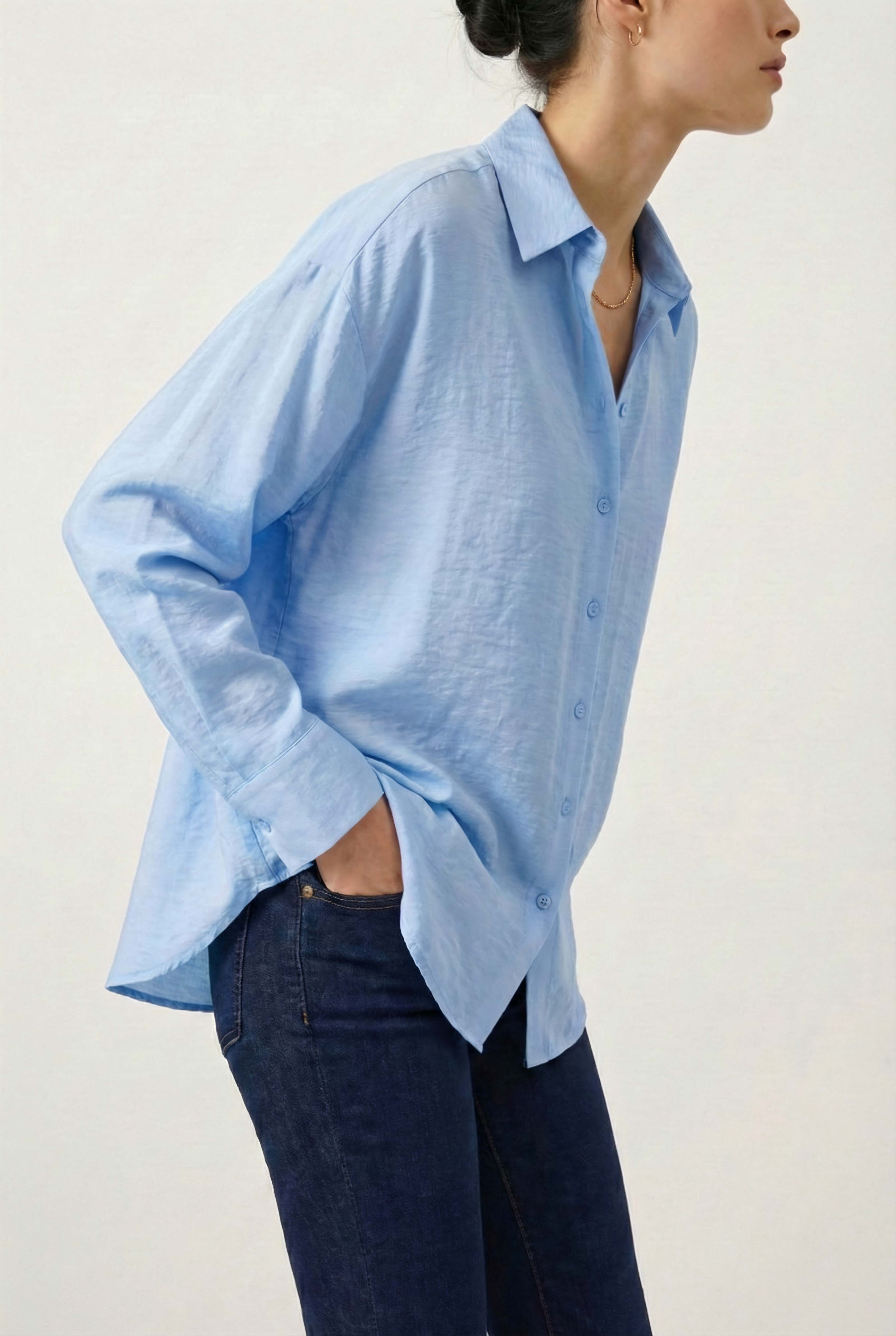 Рубашка оверсайз из мягкой вискозы — стильная и комфортная вещь для вашего гардероба. Идеально подходит для создания расслабленных повседневных образов.