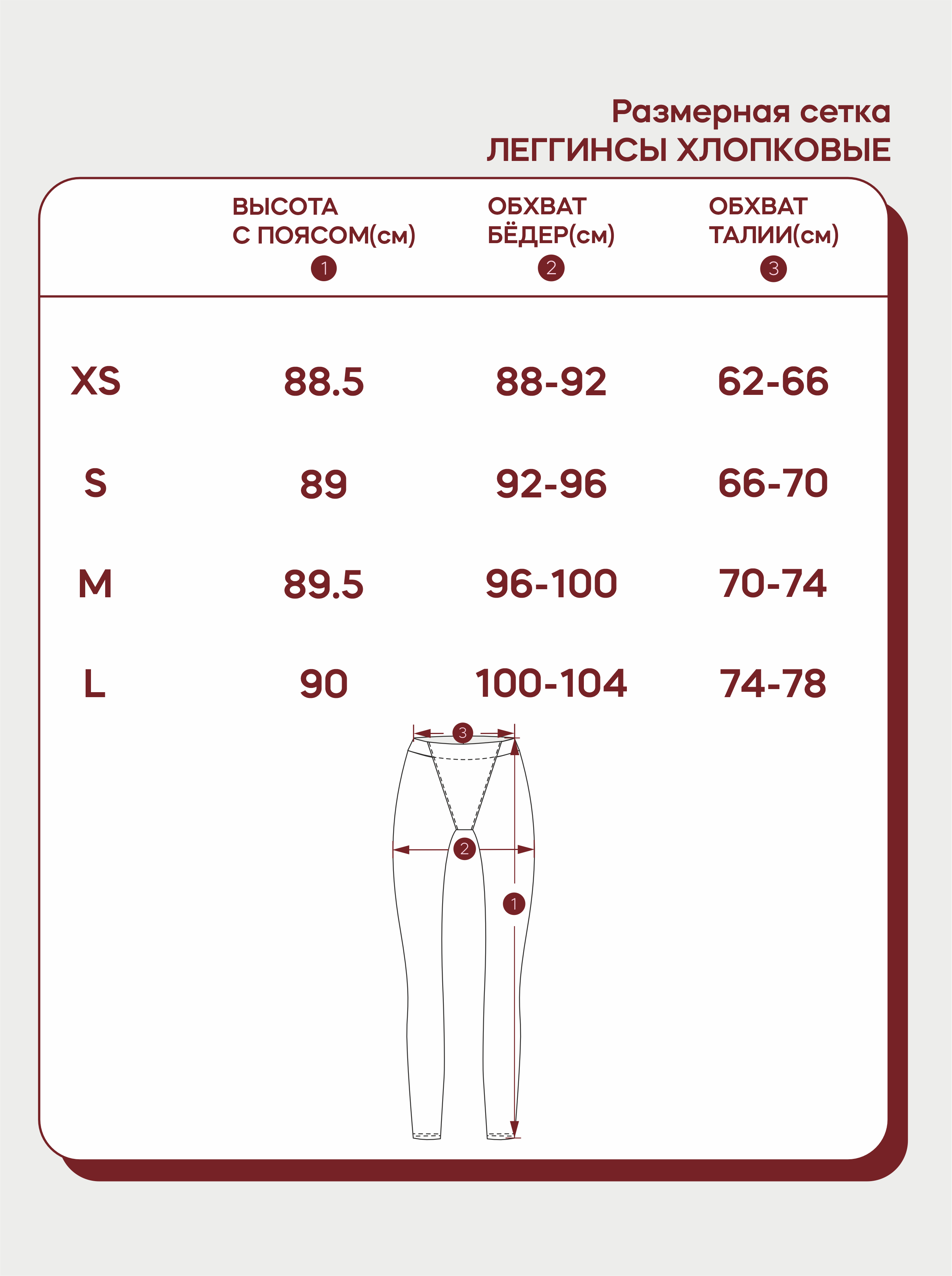 Модель создана для тех, кто ценит качество, комфорт и не готов жертвовать стилем. Высококачественный натуральный хлопок. Мягкая, дышащая, но при этом плотная ткань не просвечивает, отлично моделирует и утягивает. Легинсы подходят для повседневной носки дома, для стильных образов, для занятий спортом и йогой.