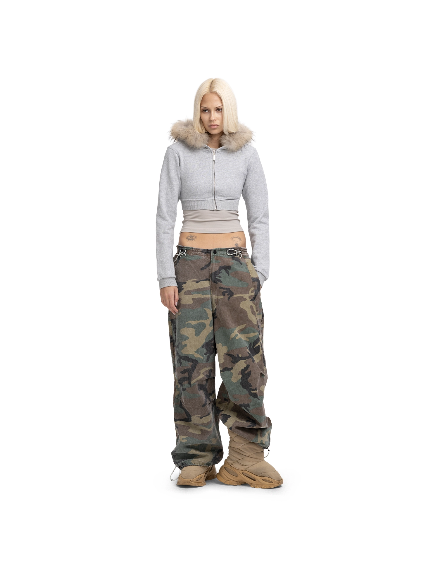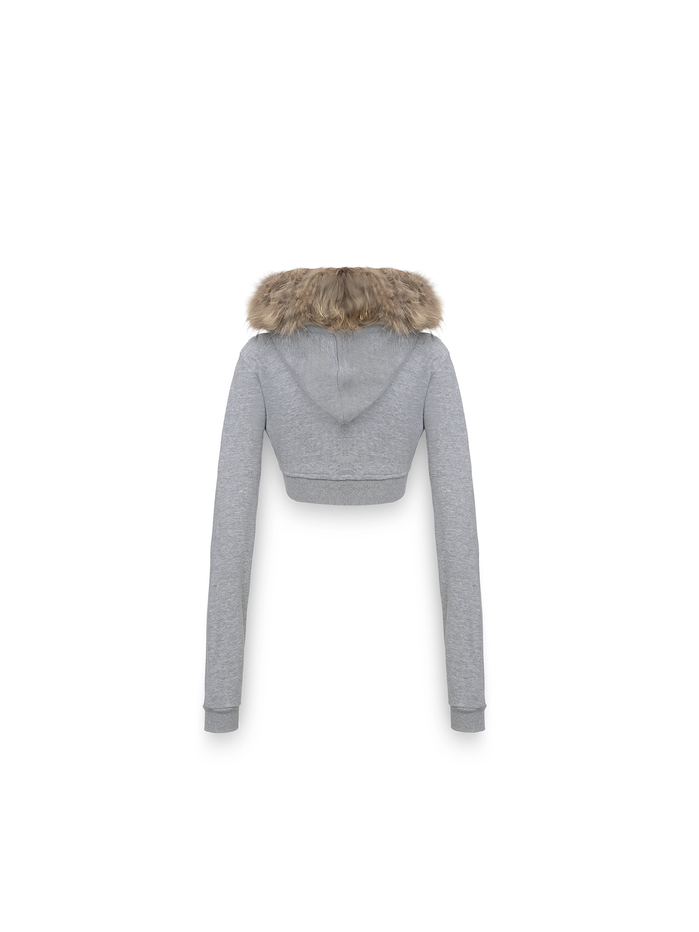 Мини-худи укороченного кроя из тонкого хлопка (240 г/м²) со съемным натуральным мехом енота.