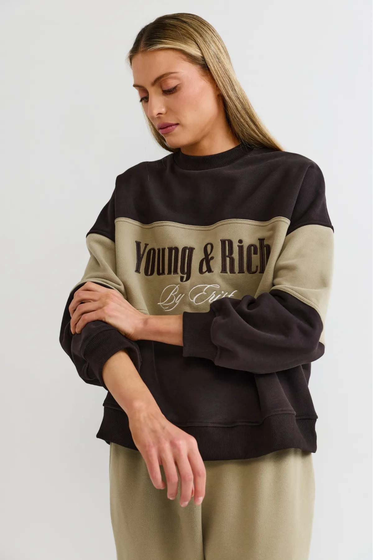 Свежий эксперимент в нашей коллекции: изделие из плотного приятного футера в двух контрастных цветах, которое сразу притягивает взгляд.