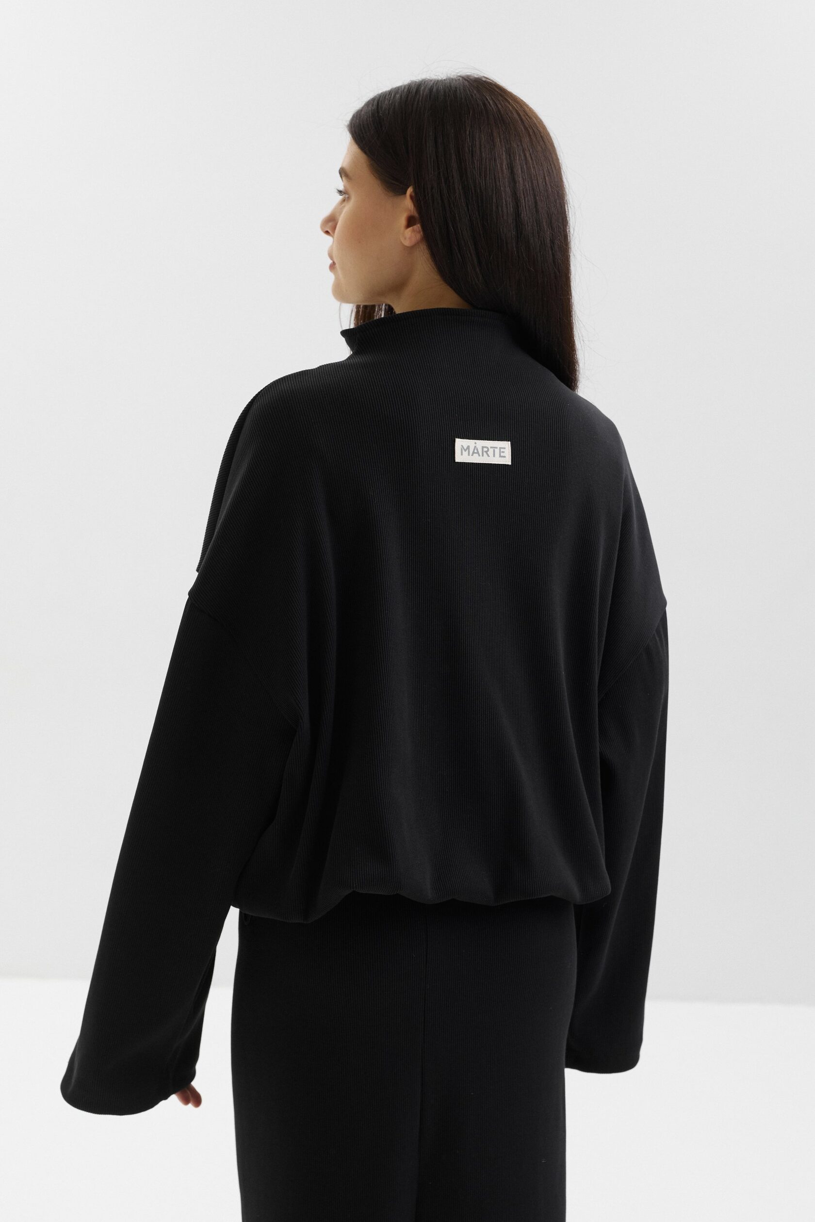 Свитшот свободного кроя с акцентным вырезом. Выполнен из плотного, эластичного материала со множеством деталей. По низу и рукавам изделия есть кулиска, с помощью которой можно отрегулировать объем и длину свитшота. Главный акцент — нашивка логотипа на спинке.