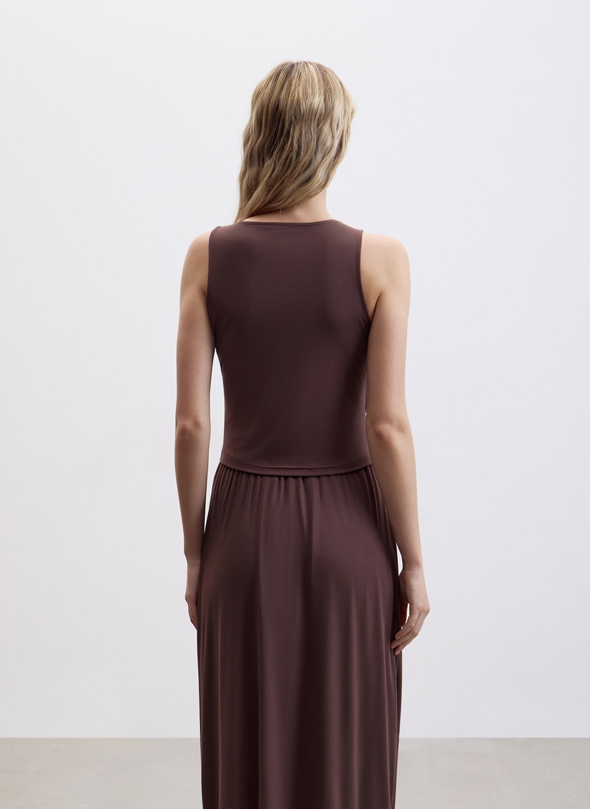 Флюидная ткань мягко обтекает фигуру и очень приятно касается тела. Лёгкий материал позволяет коже дышать даже в тёплое время года.