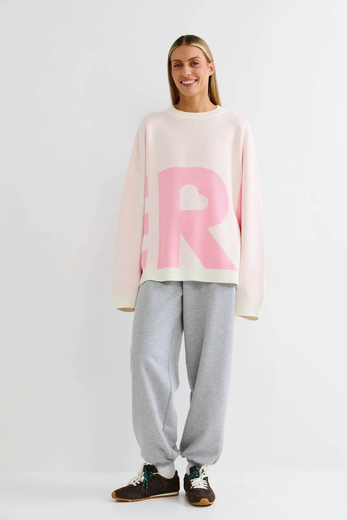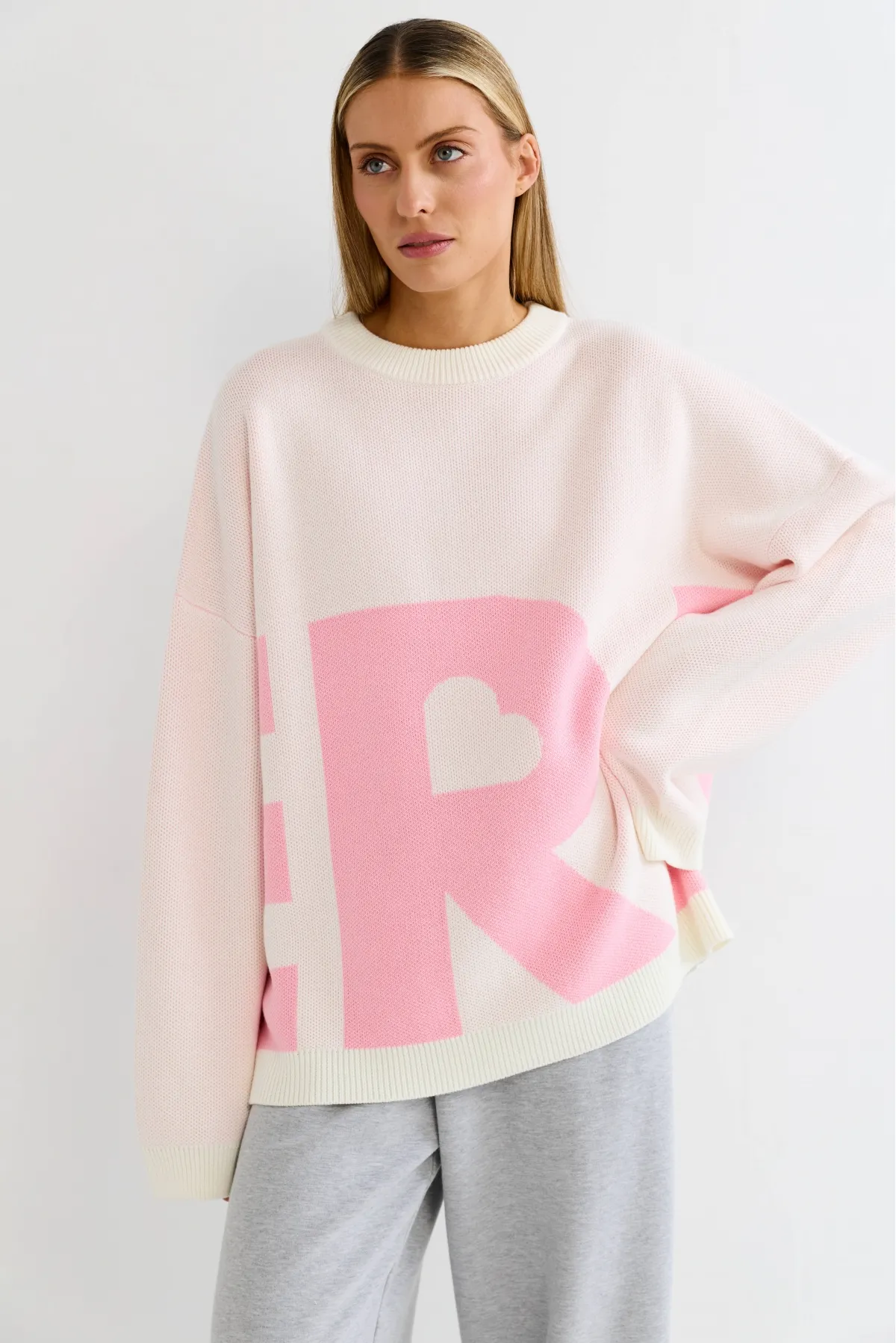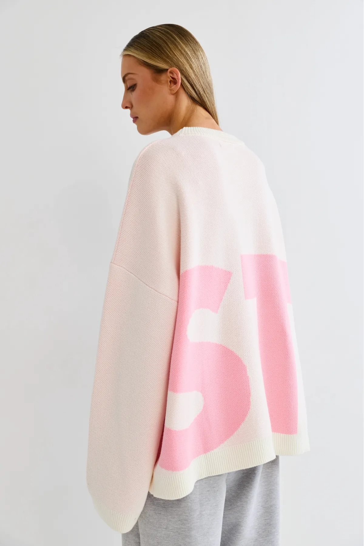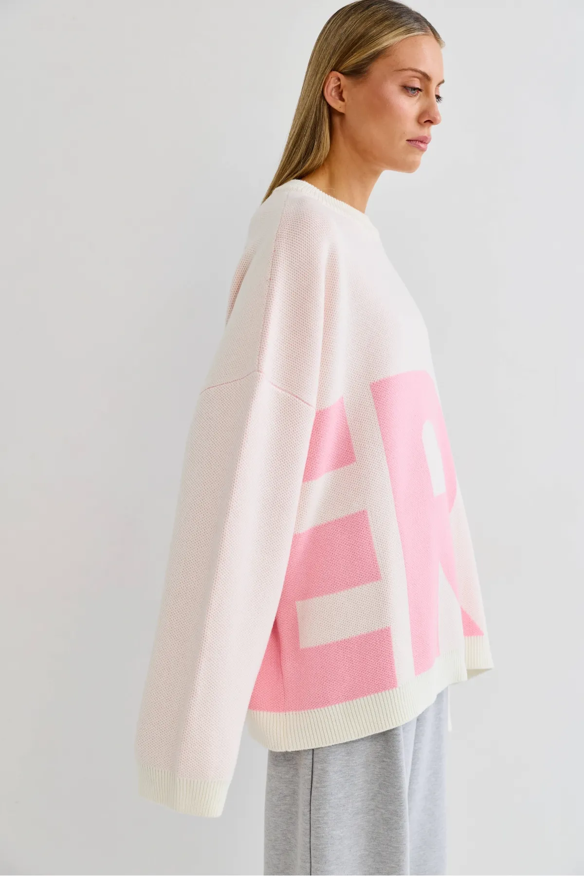 Пропорции позволяют сочетать джемпер как с облегающей, так и с более свободной одеждой. Нейтральный цвет делает его универсальным. Акцентные буквы логотипа добавляют характер без лишней вычурности: минимализм и узнаваемость в одном элементе.