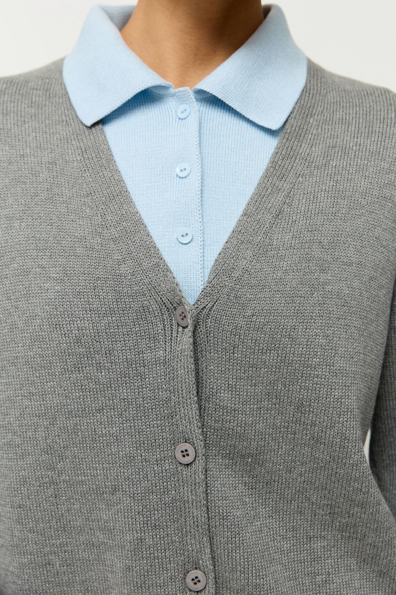 Кардиган связан из легкого и комфортного хлопка с добавлением акрила (для долгой службы изделия).