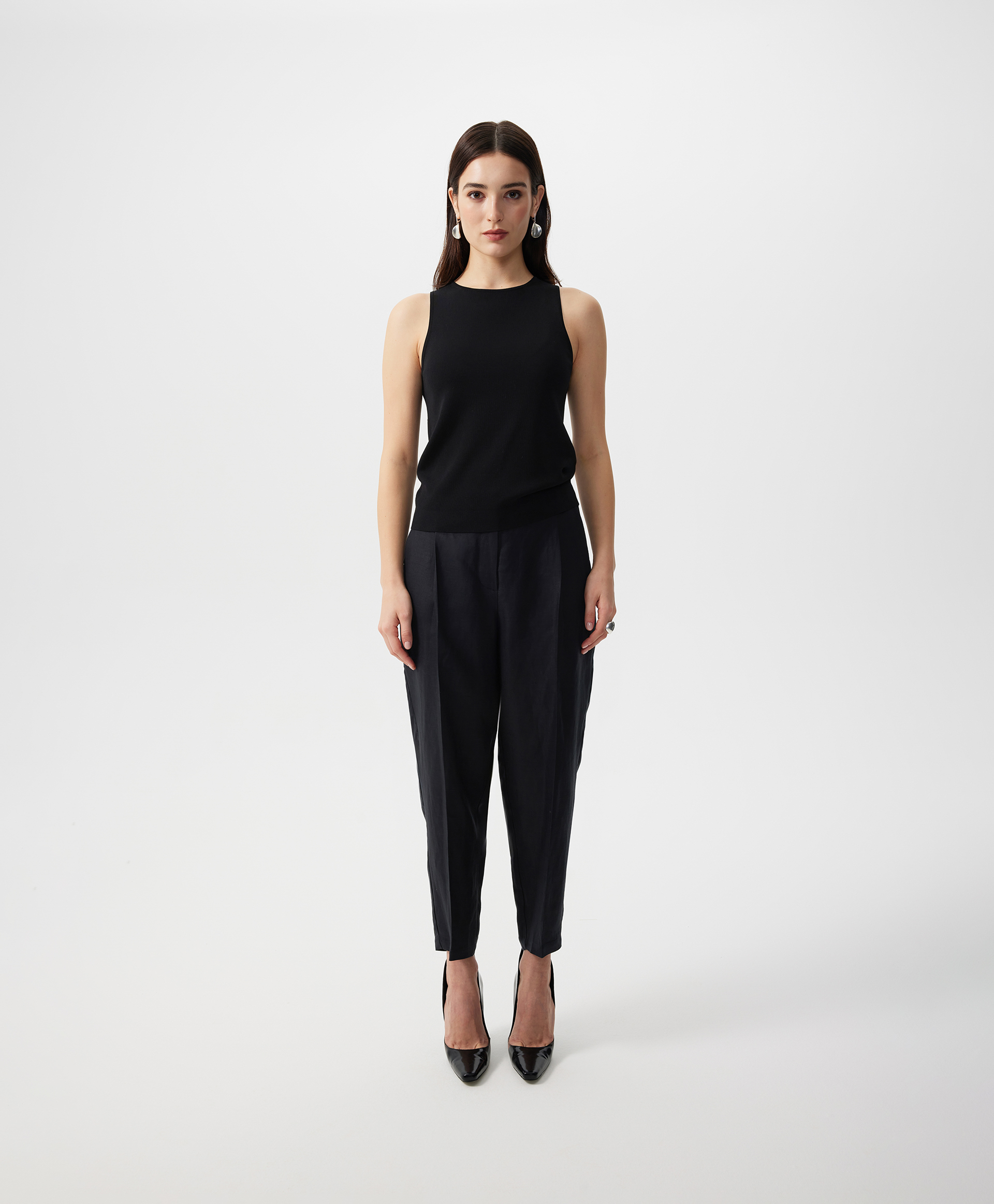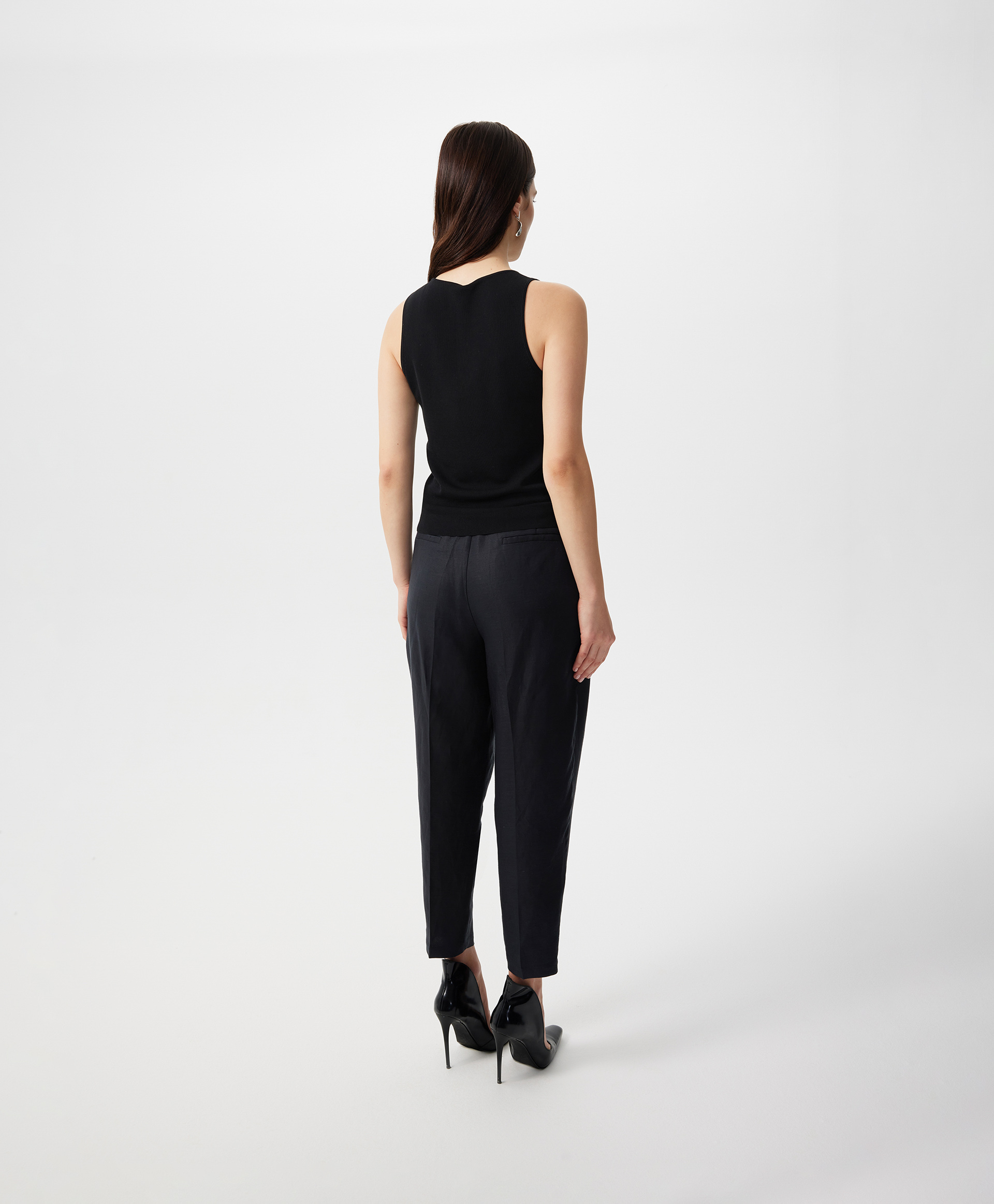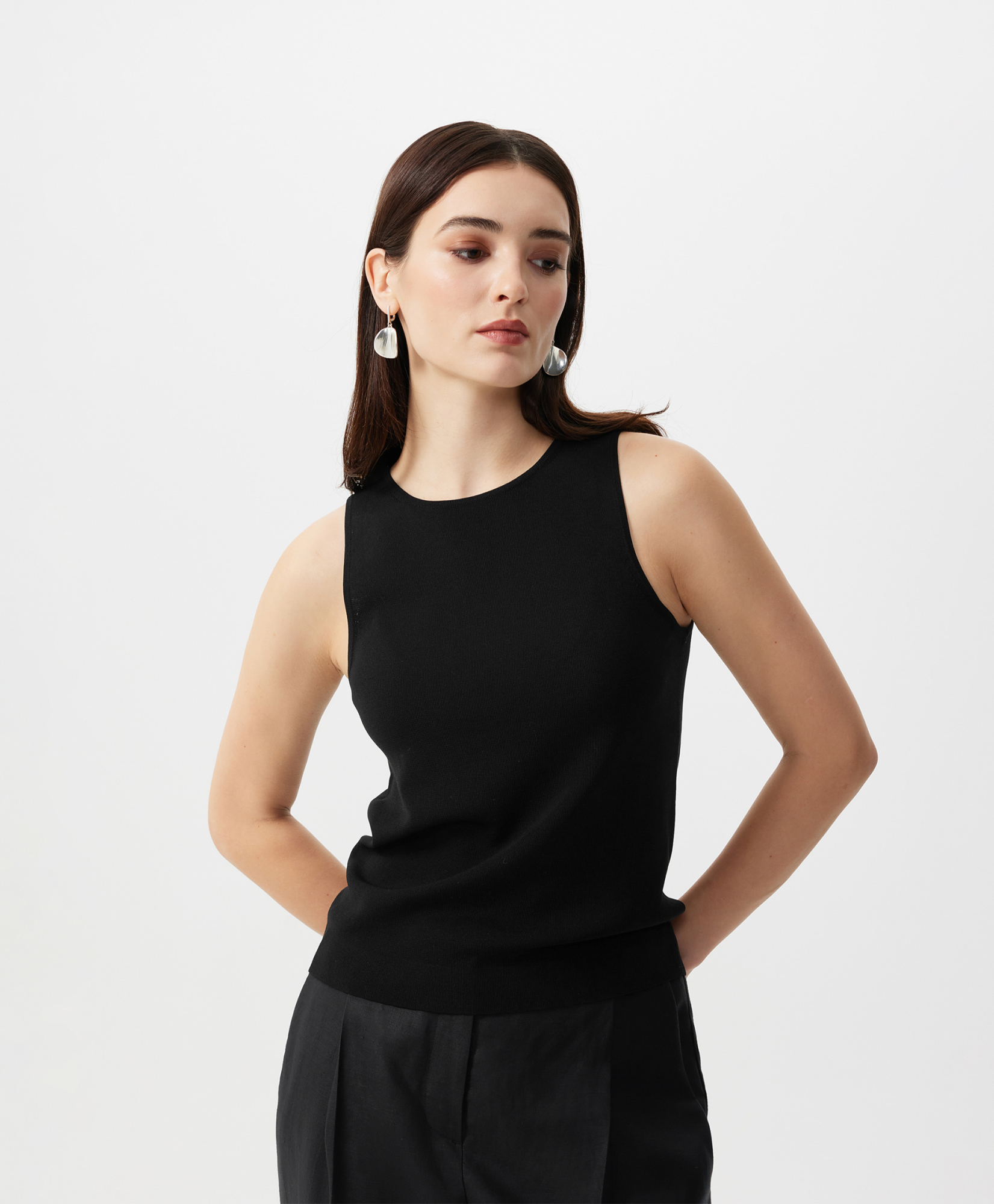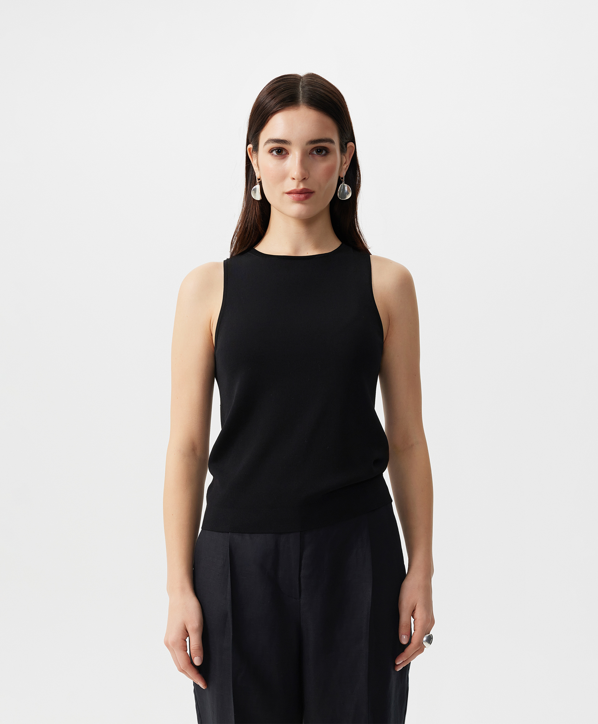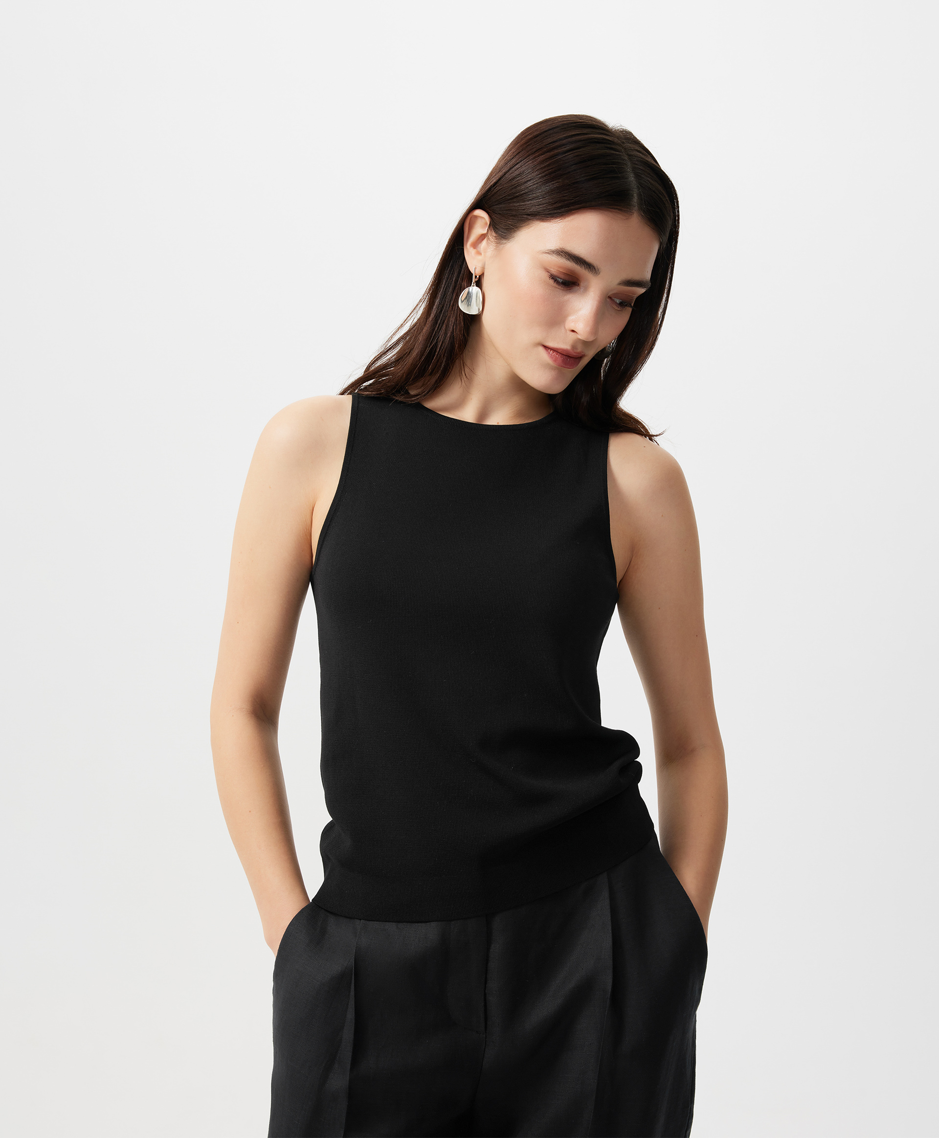 Вязаный полуприлегающий топ - это лучшая инвестиция в качество, стиль, вариативность. Выполненный из потрясающей пряжи с высоким содержанием натурального шелка, мягкий, пластичный, приятный на ощупь, топ еще раз напомнит, что тренды приходят и уходят, а качественная база остается неизменной, служа долгие годы. Топ будет безупречным единичным изделием в жаркий день в комплекте с юбкой, брюками, шортами, а также превосходным первым слоем в сочетании с пиджаком, кардиганом, блузкой. В любом случае, он подарит тактильное удовольствие, став основой элегантного женского гардероба.