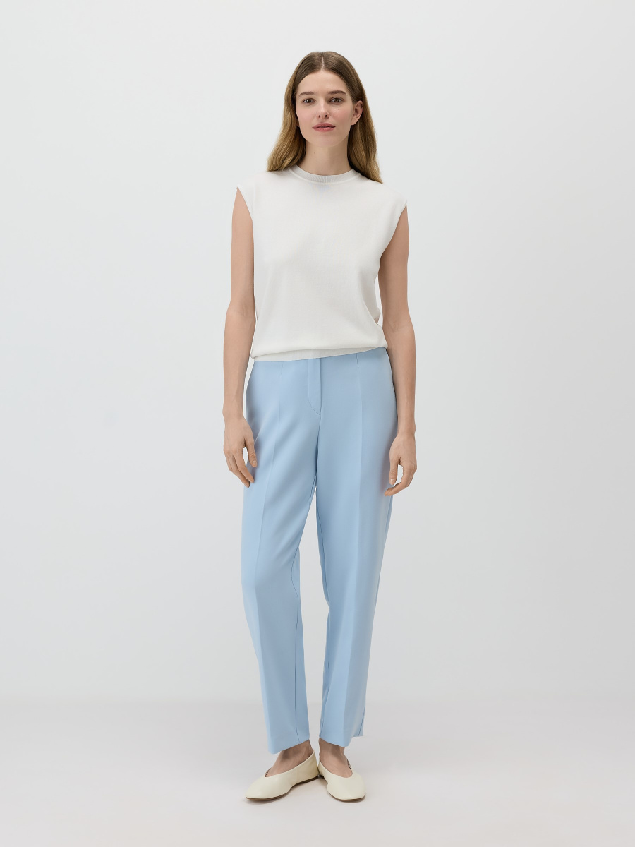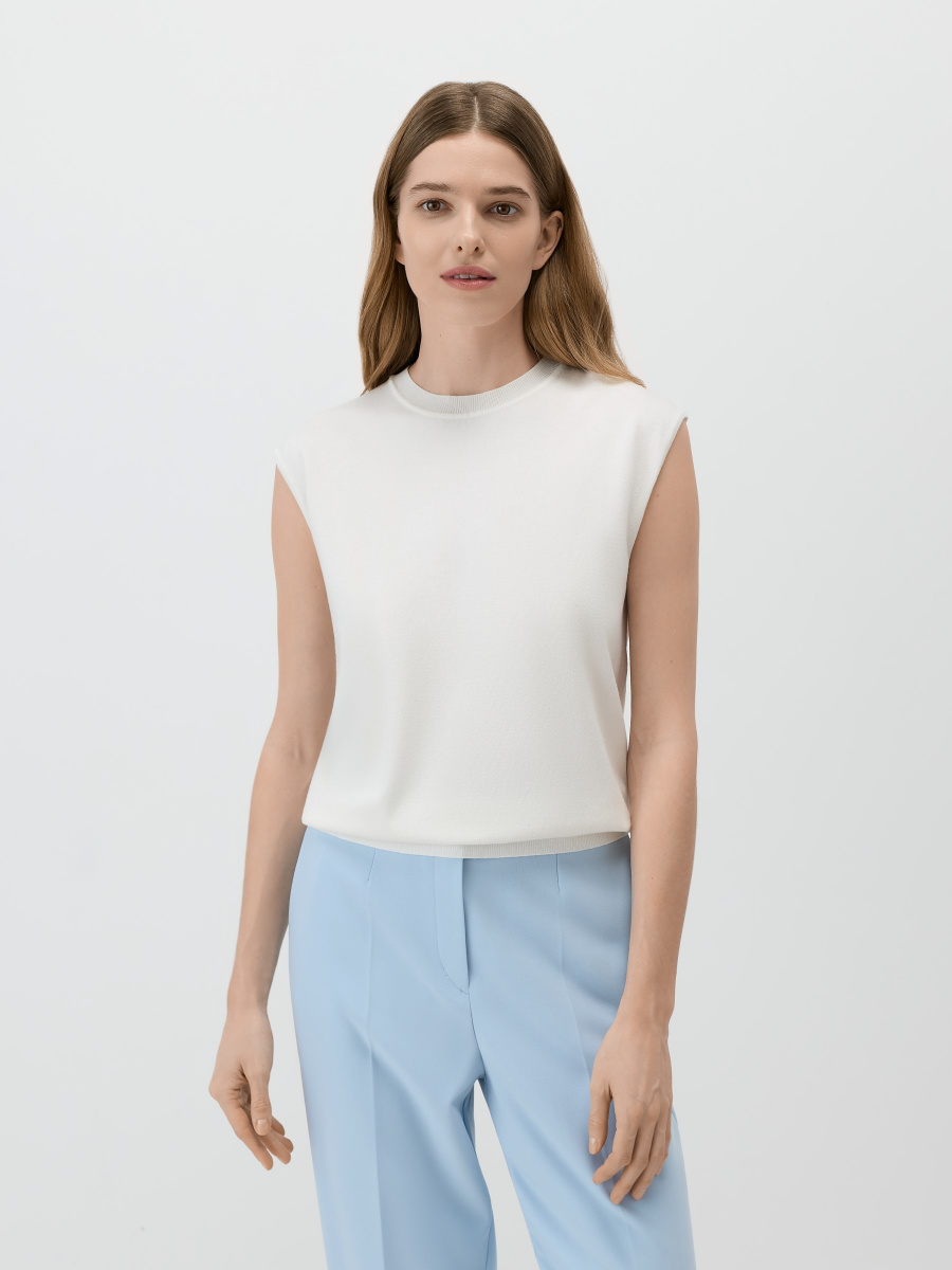 Универсальный топ из 100% вискозы в природных оттенках — мягкий и гладкий на ощупь. Прямой силуэт с легким напуском и чуть спущенной линией плеча создает расслабленный контур. Круглая горловина и низ обработаны фактурной резинкой, благодаря чему изделие смотрится аккуратно и естественно садится по фигуре.