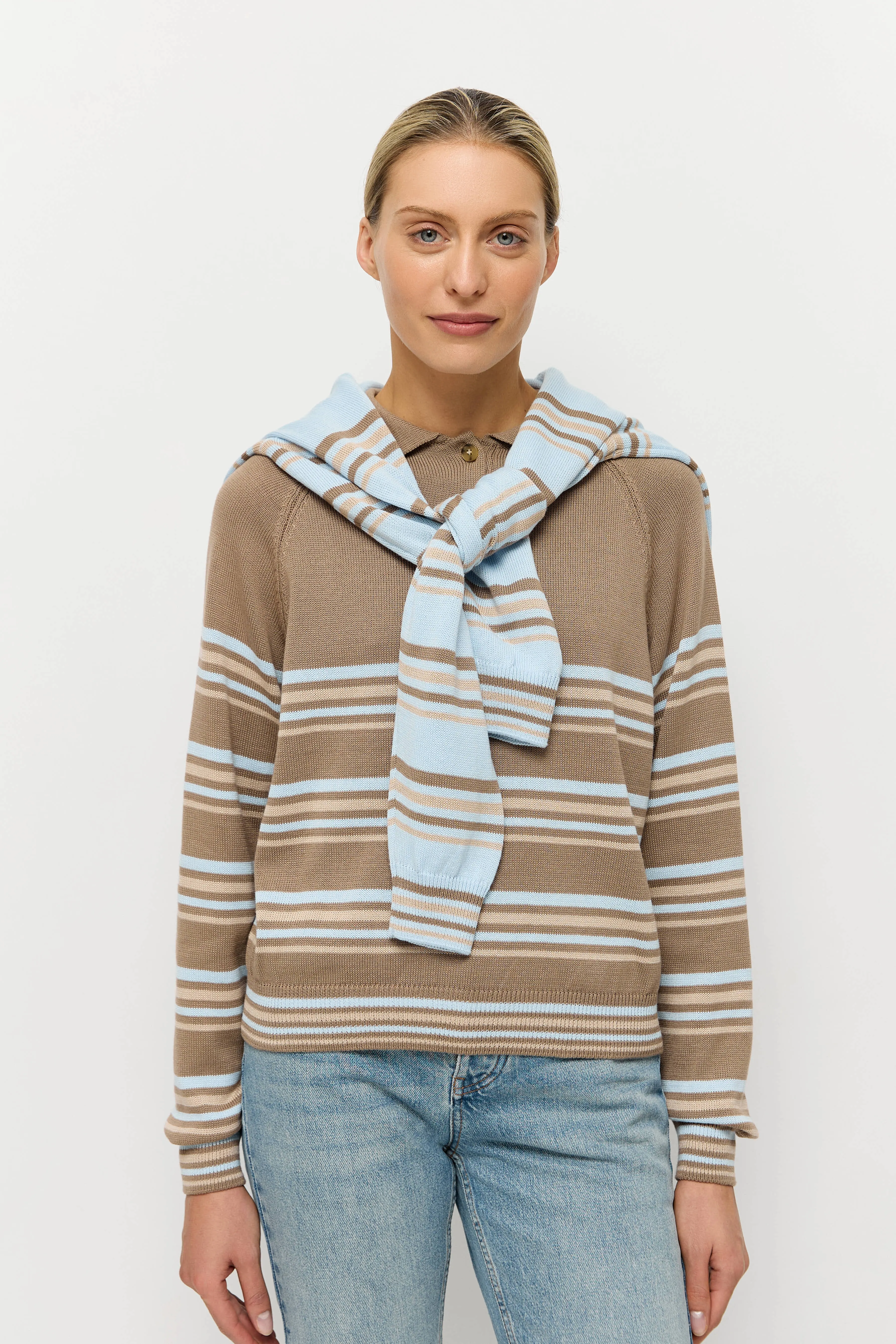 Джемпер-поло дополнит образы в качестве первого слоя под жакет, а также поверх футболки или лонгслива.