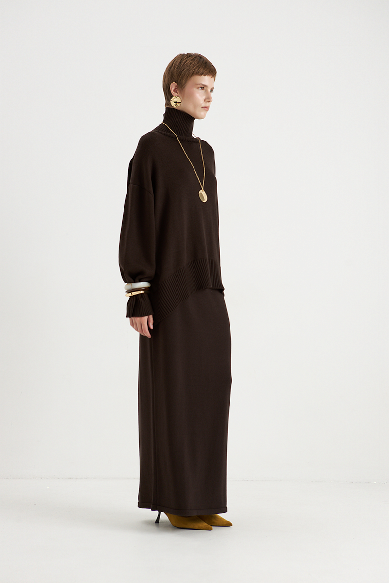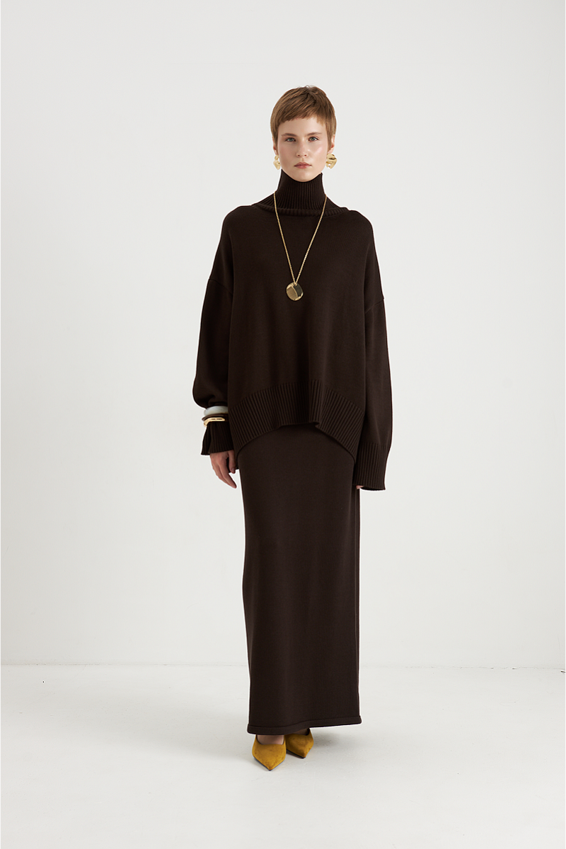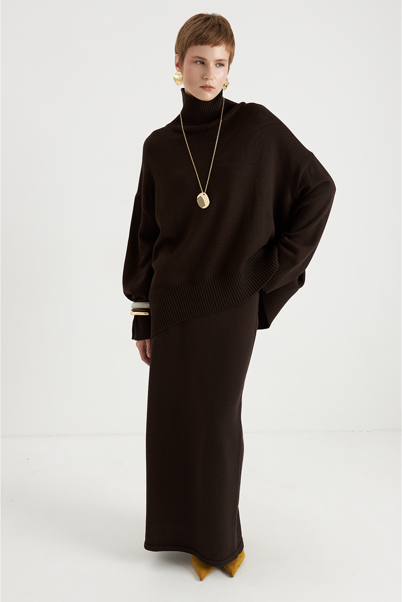 Идеальный выбор для создания стильного и комфортного образа. Она выполнена из качественной пряжи, что обеспечивает долговечность и сохранение формы. Благодаря прямому крою и длине макси, юбка подчёркивает женственность и скрывает недостатки фигуры, создавая элегантный и сбалансированный силуэт.