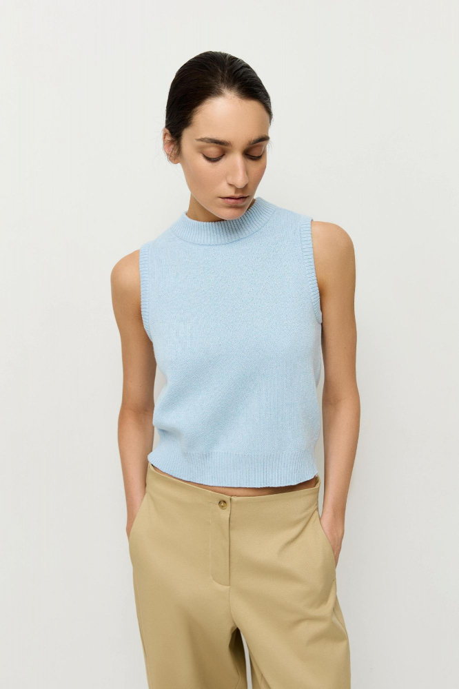 Жилет-майка связан из легкого и комфортного к коже хлопка.