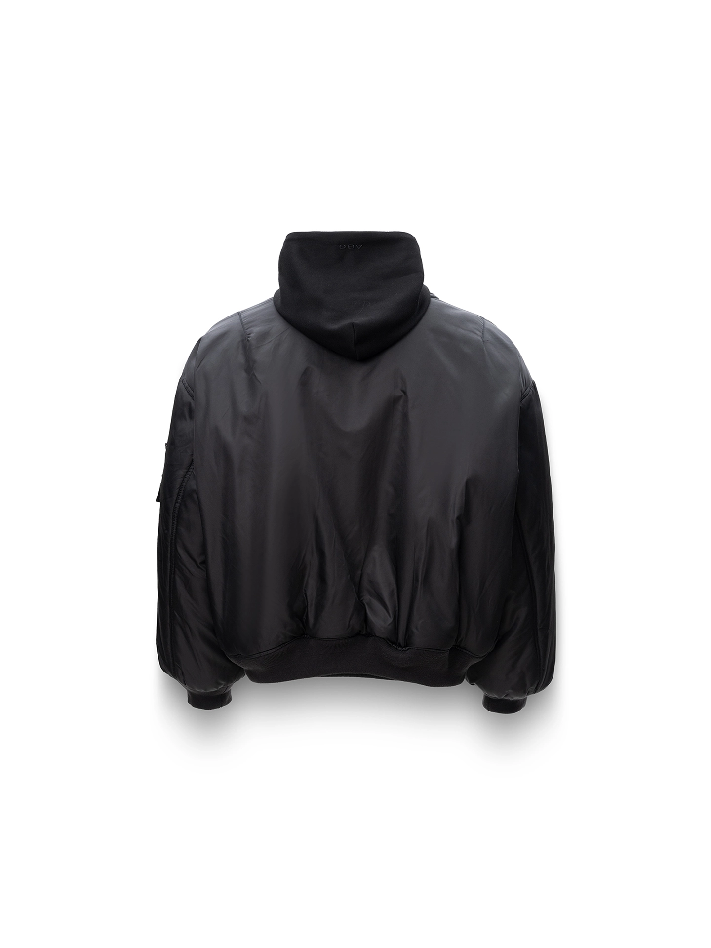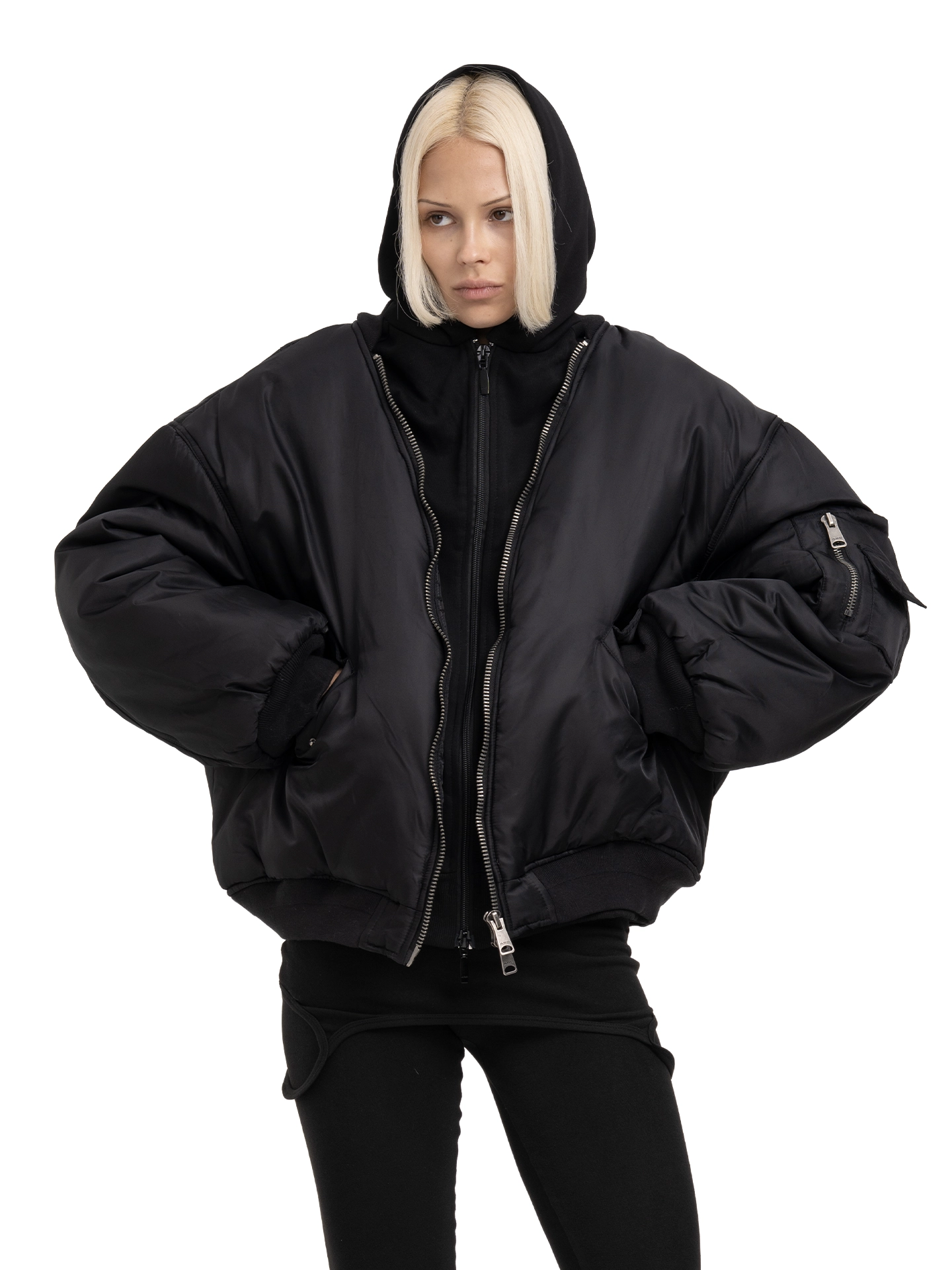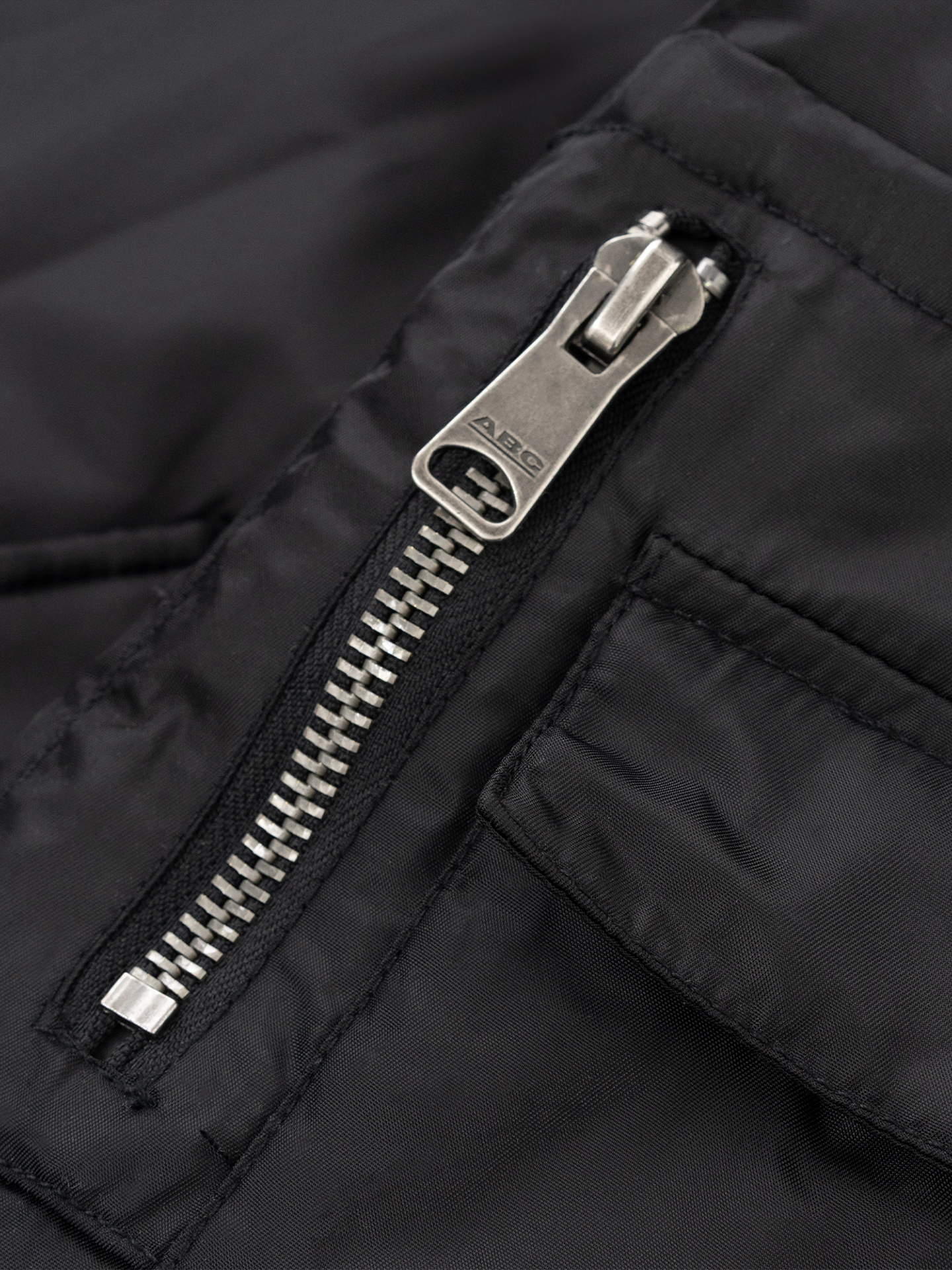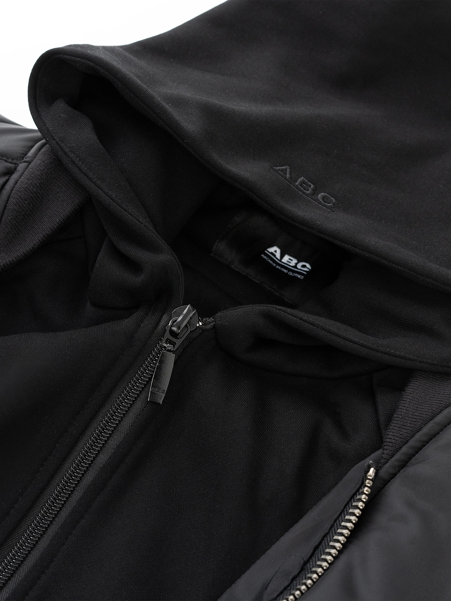 Внешняя часть выполнена из нейлона, внутренняя подкладка и капюшон — из плотного мягкого футера. Каждая модель окрашена вручную, создавая уникальный эффект цветового перехода. Фурнитура из стали с логотипом ABC.