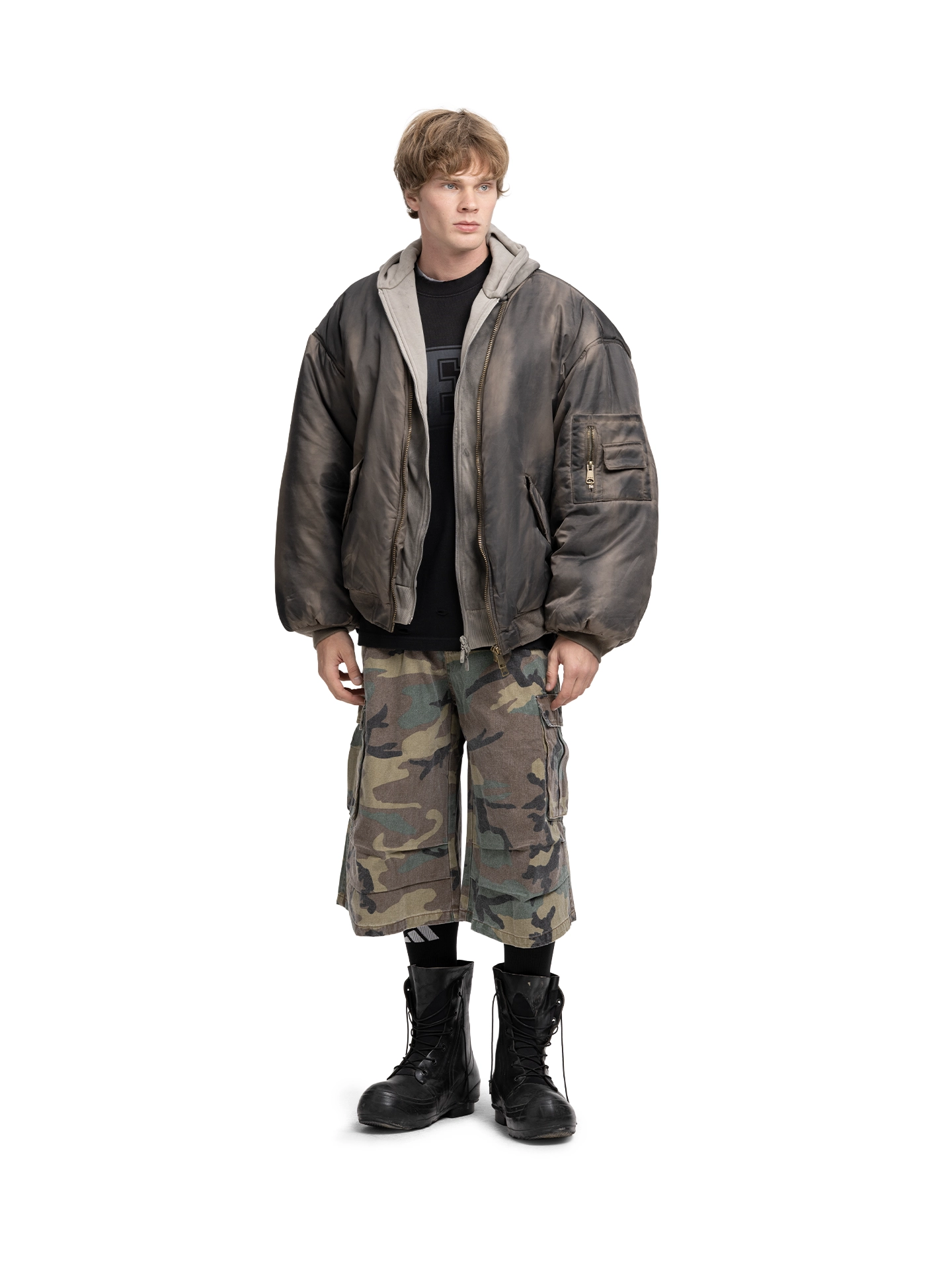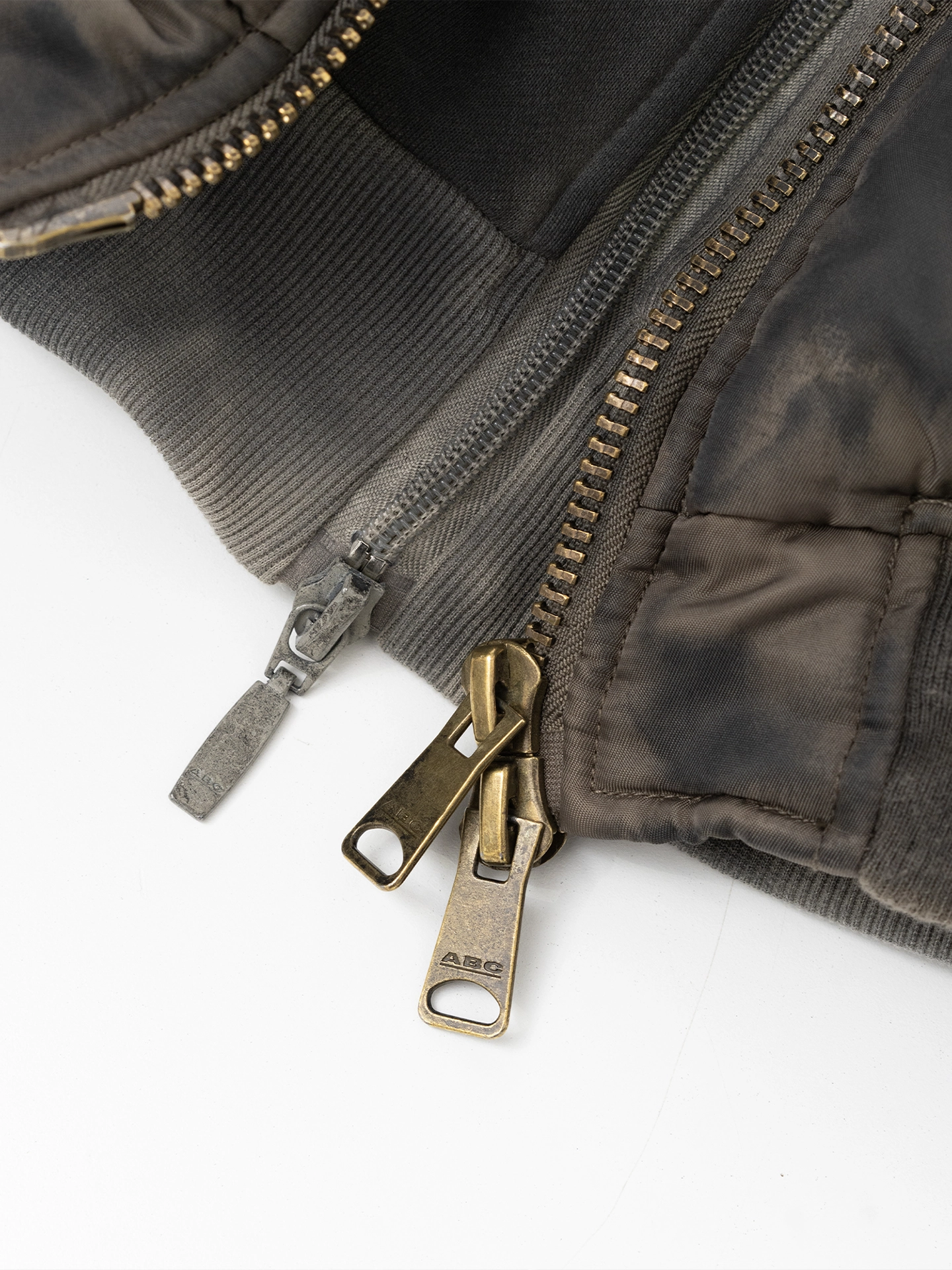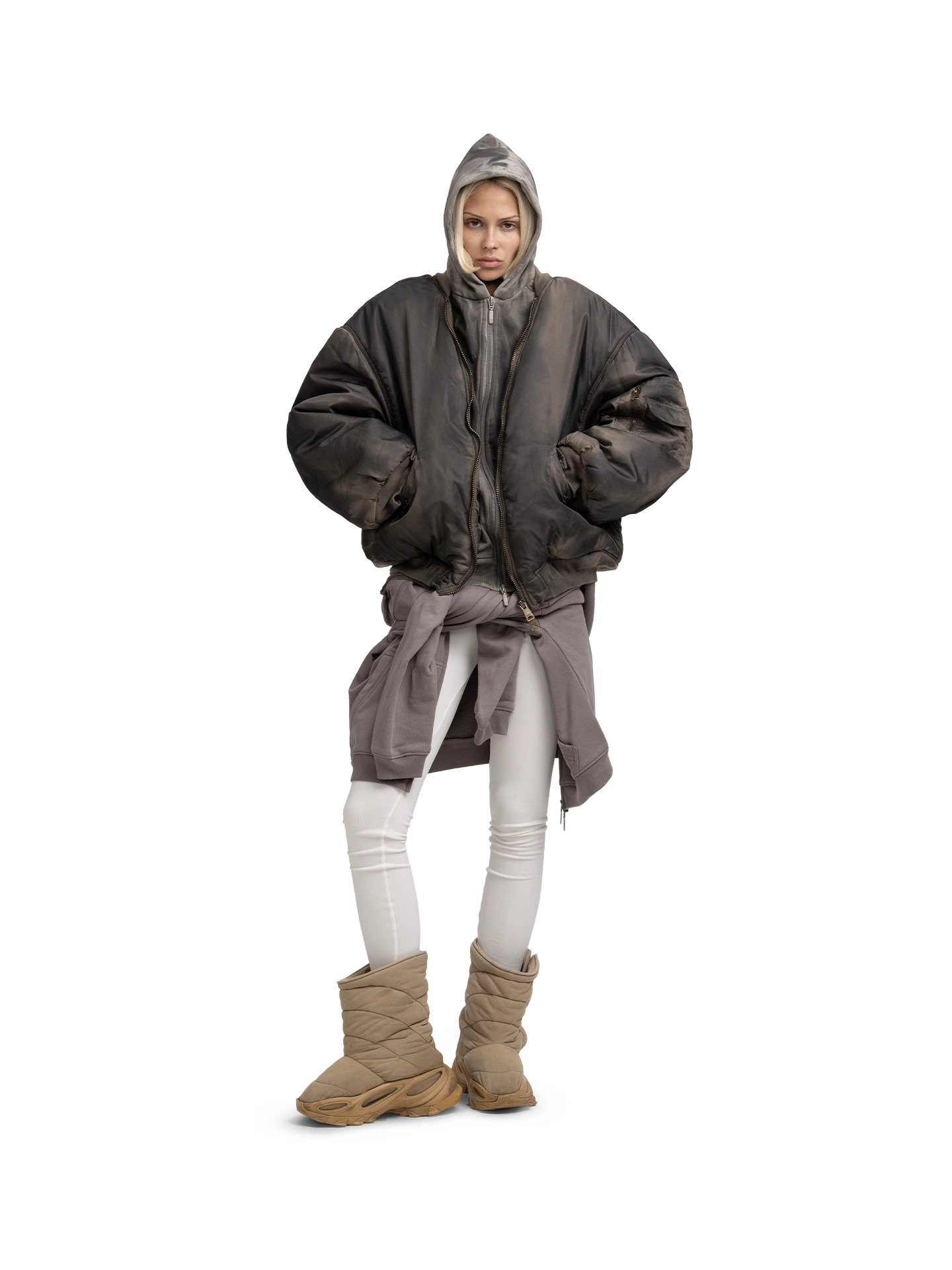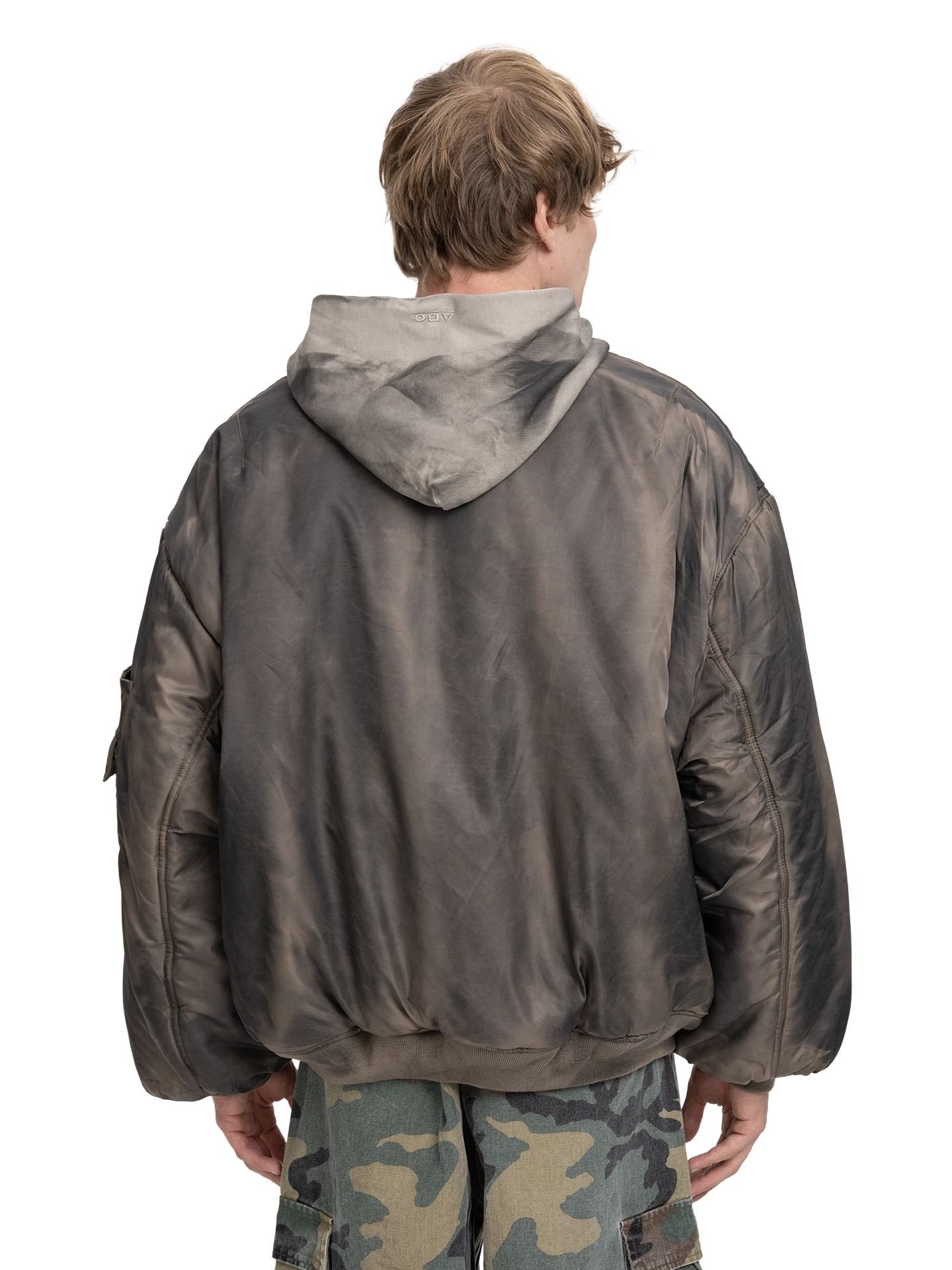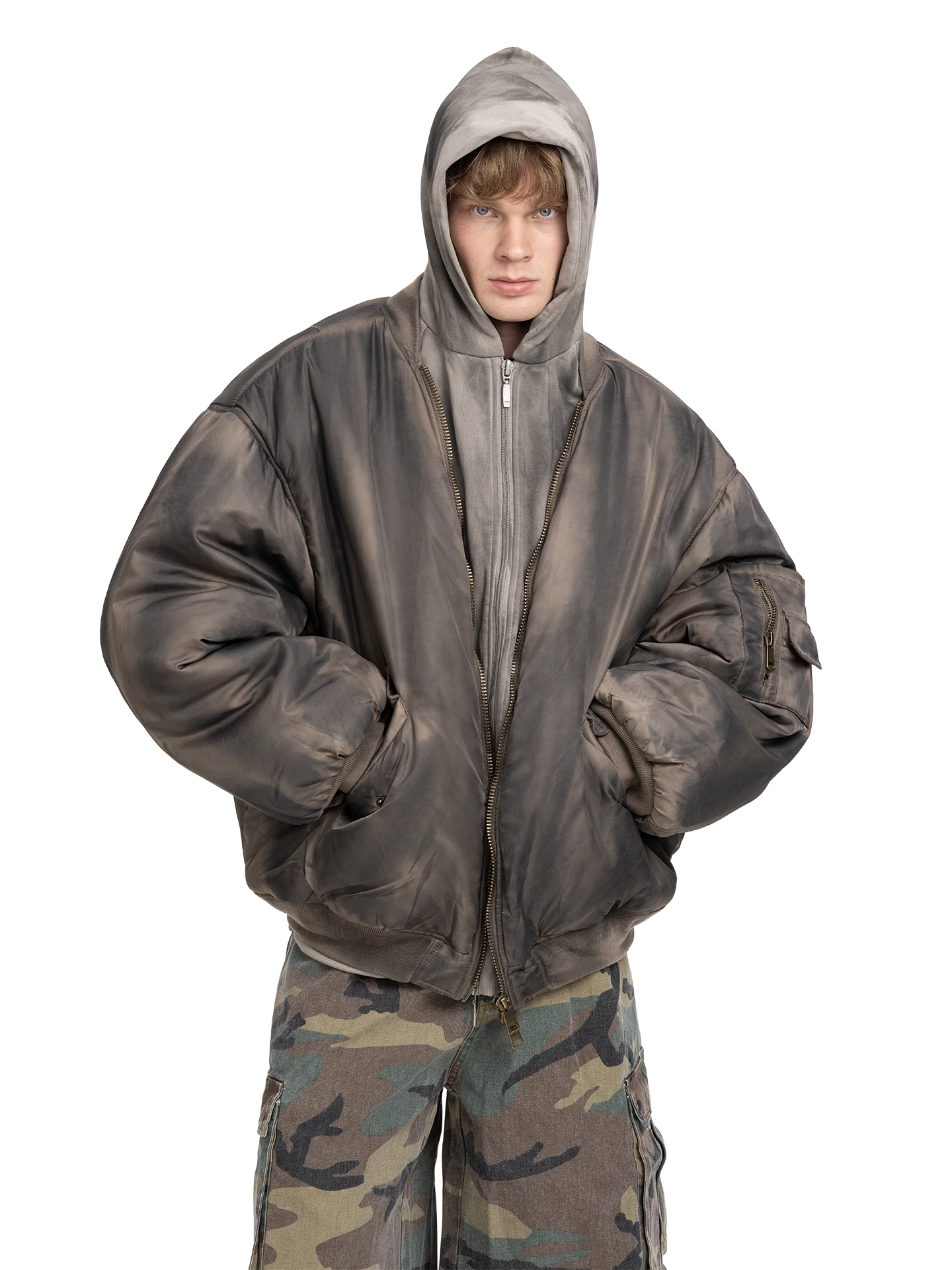 Внешняя часть выполнена из нейлона, внутренняя подкладка и капюшон — из плотного мягкого футера. Каждая модель окрашена вручную, создавая уникальный эффект цветового перехода. Фурнитура из стали с логотипом ABC.