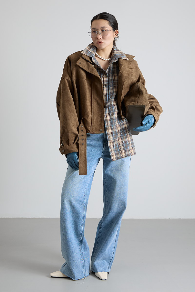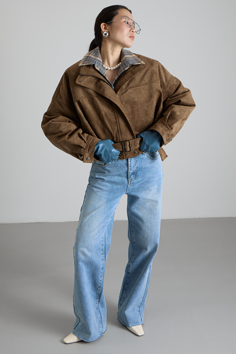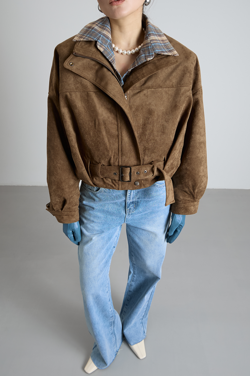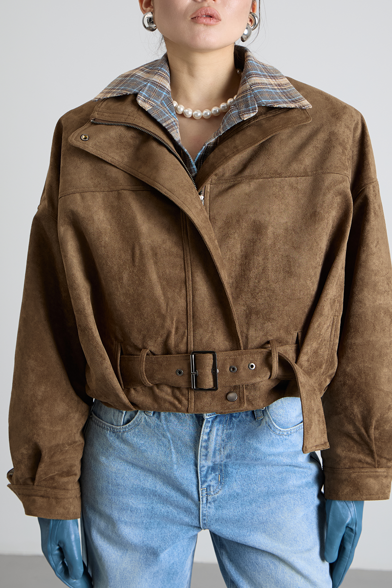 Ремень по низу бомбера добавляет изысканности и завершённости образу, а также позволяет регулировать посадку изделия. Укороченный крой делает бомбер удобным и практичным, не сковывая движений.