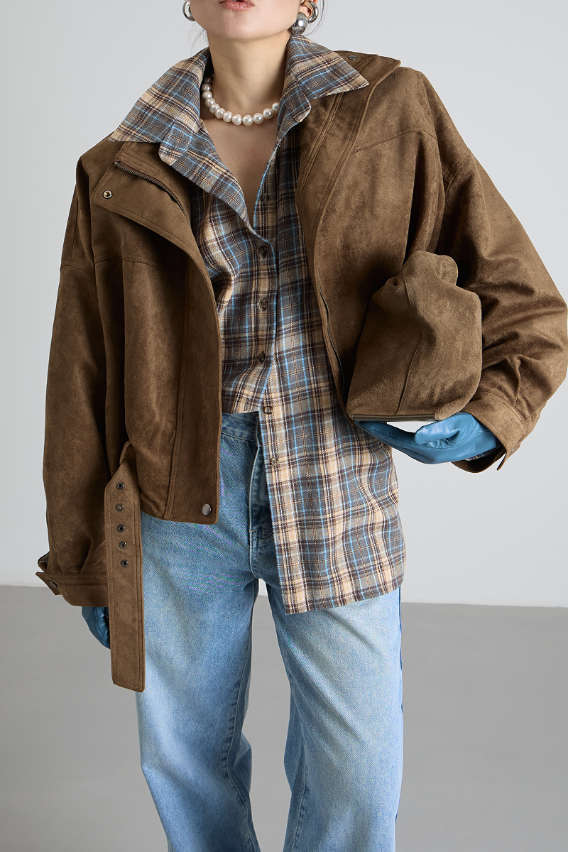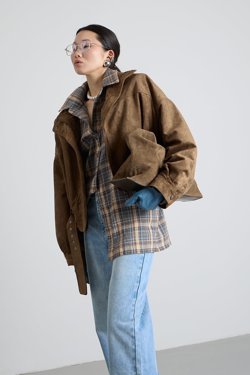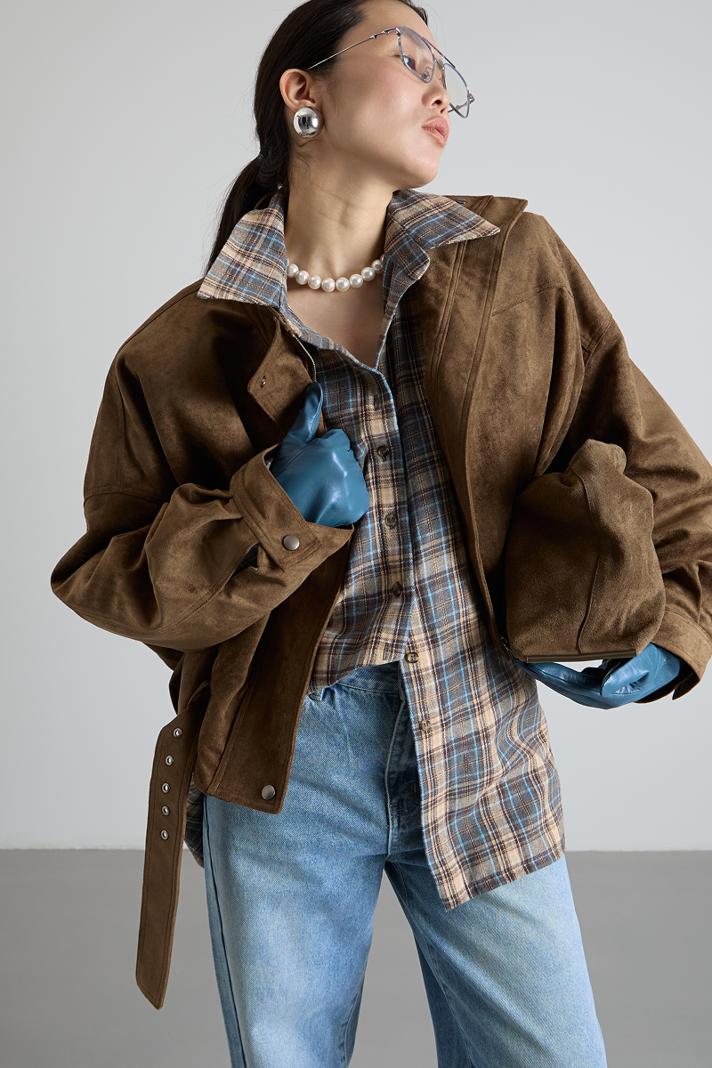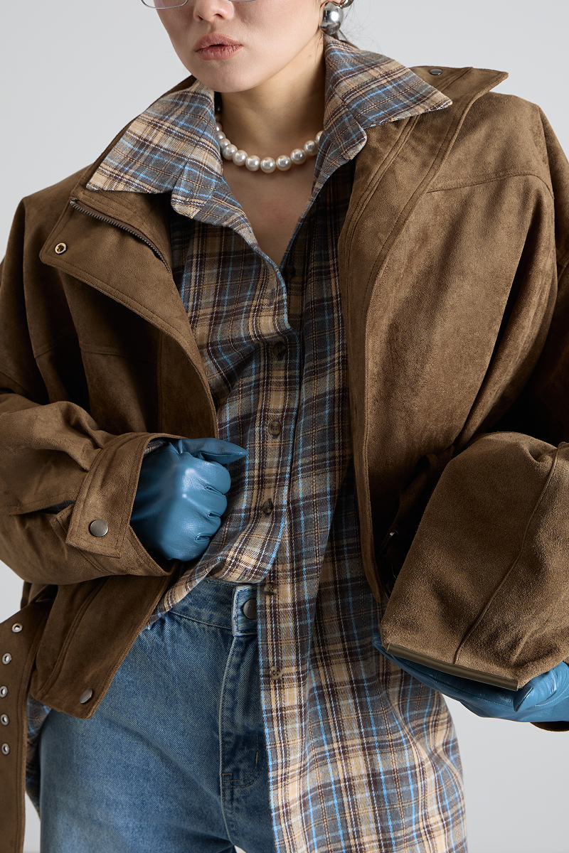 Ремень по низу бомбера добавляет изысканности и завершённости образу, а также позволяет регулировать посадку изделия. Укороченный крой делает бомбер удобным и практичным, не сковывая движений.
