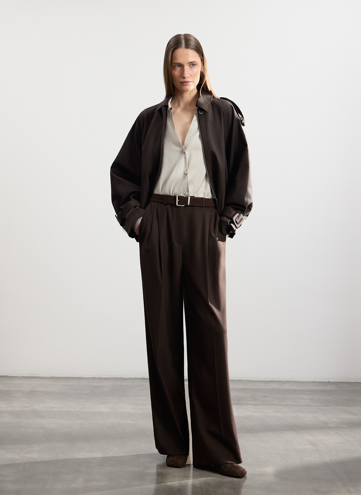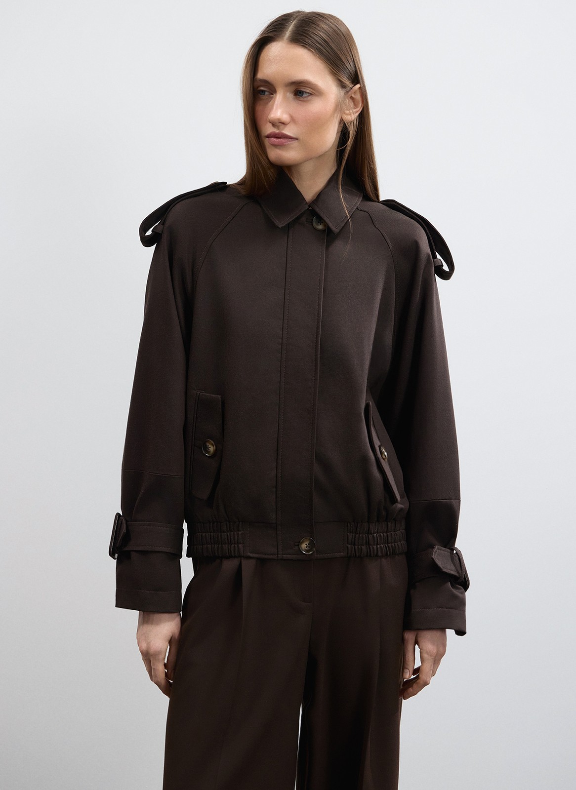Мы дополнили модель эполетами, манжетами и удобной застёжкой на молнии. В меру свободный крой не сковывает движений и создаёт сбалансированный силуэт.