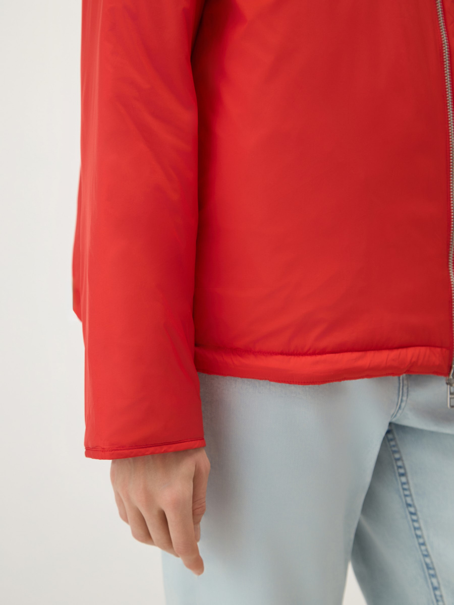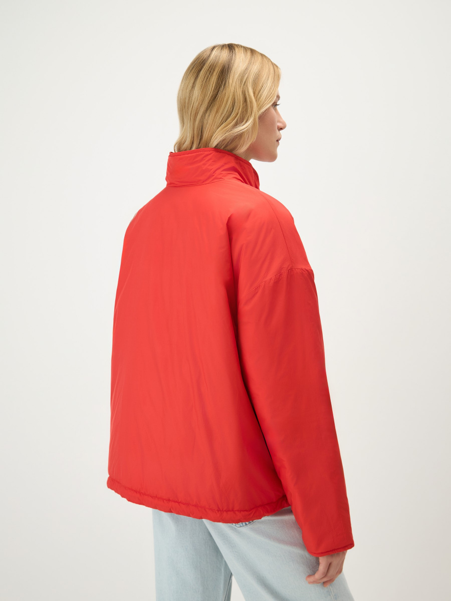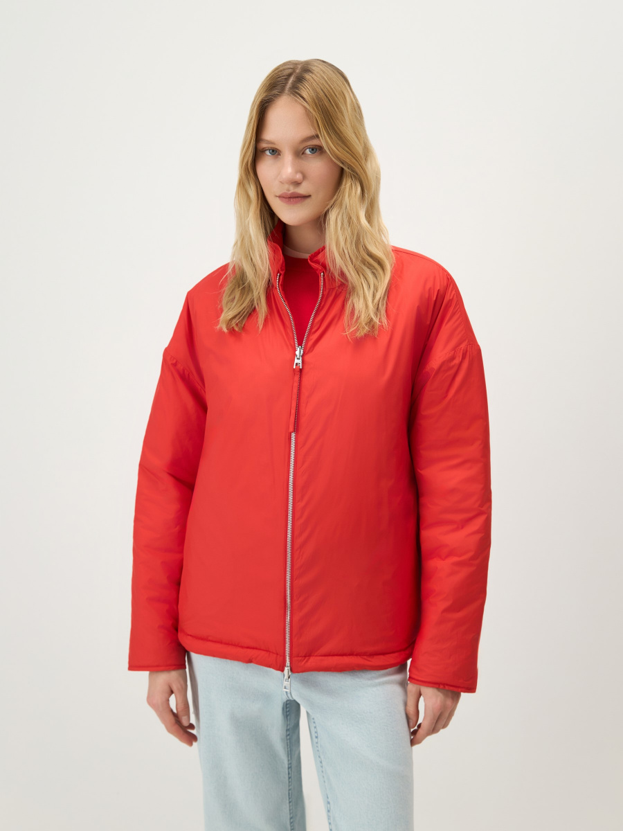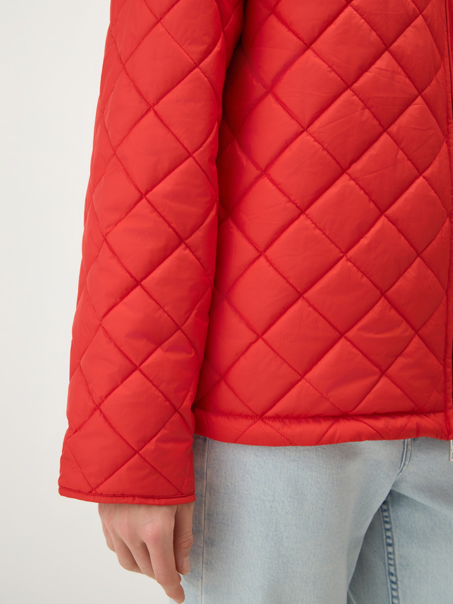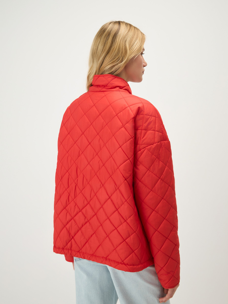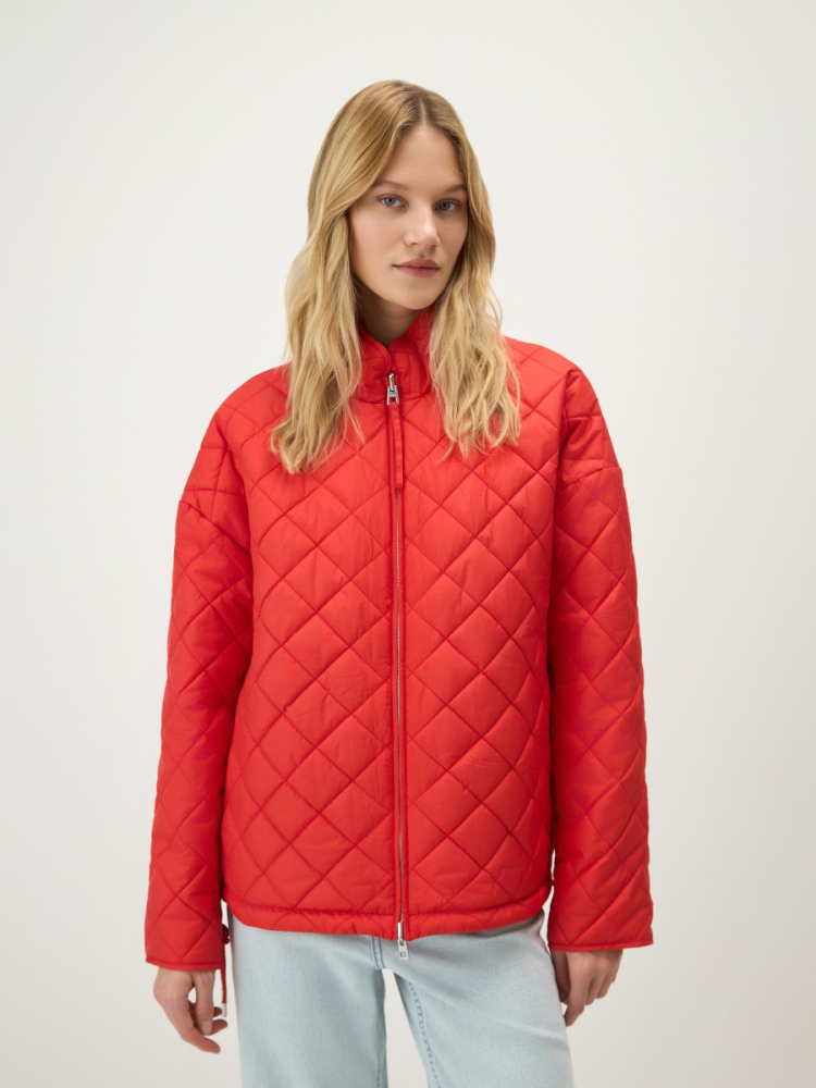 Легкая двусторонняя куртка на синтепоне для теплого межсезонья: с ромбовидной стежкой с одной стороны, и в гладкой ткани без декора — с другой. Прямая посадка регулируется боковыми завязками на шнурках. Металлическая молния расстегивается сверху и снизу, а утепленный воротник-стойка защищает шею от ветра. Вместительные карманы добавляют функциональности.