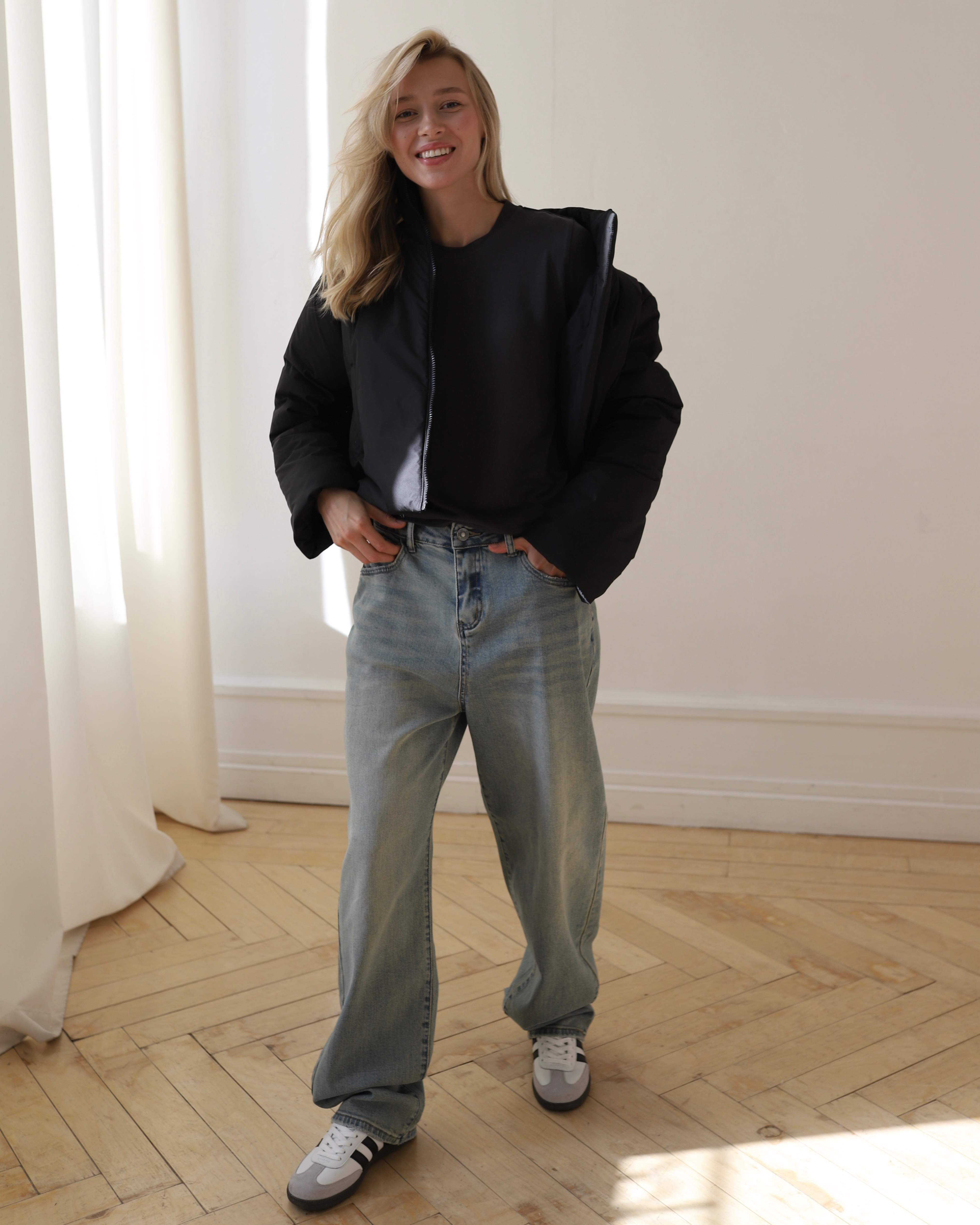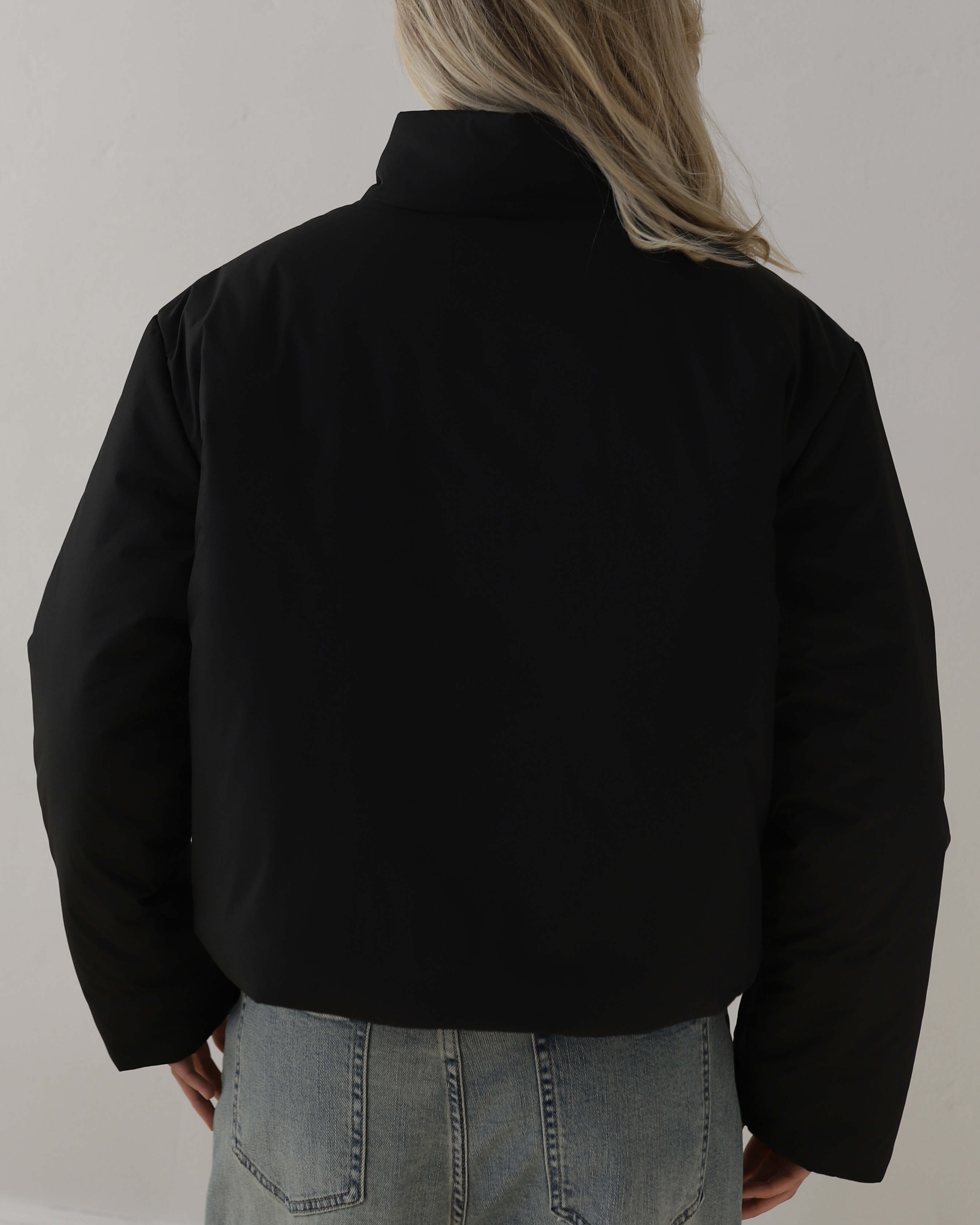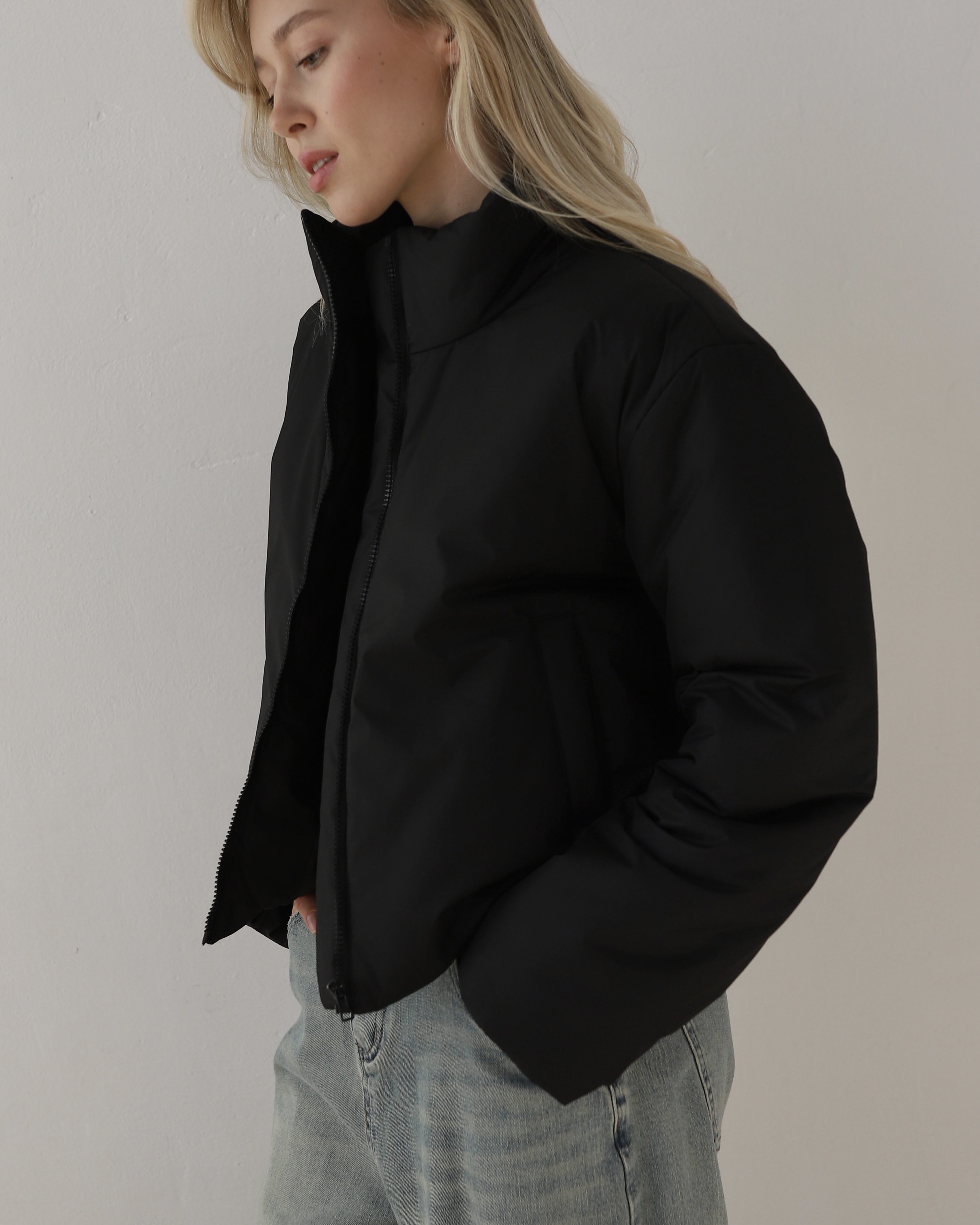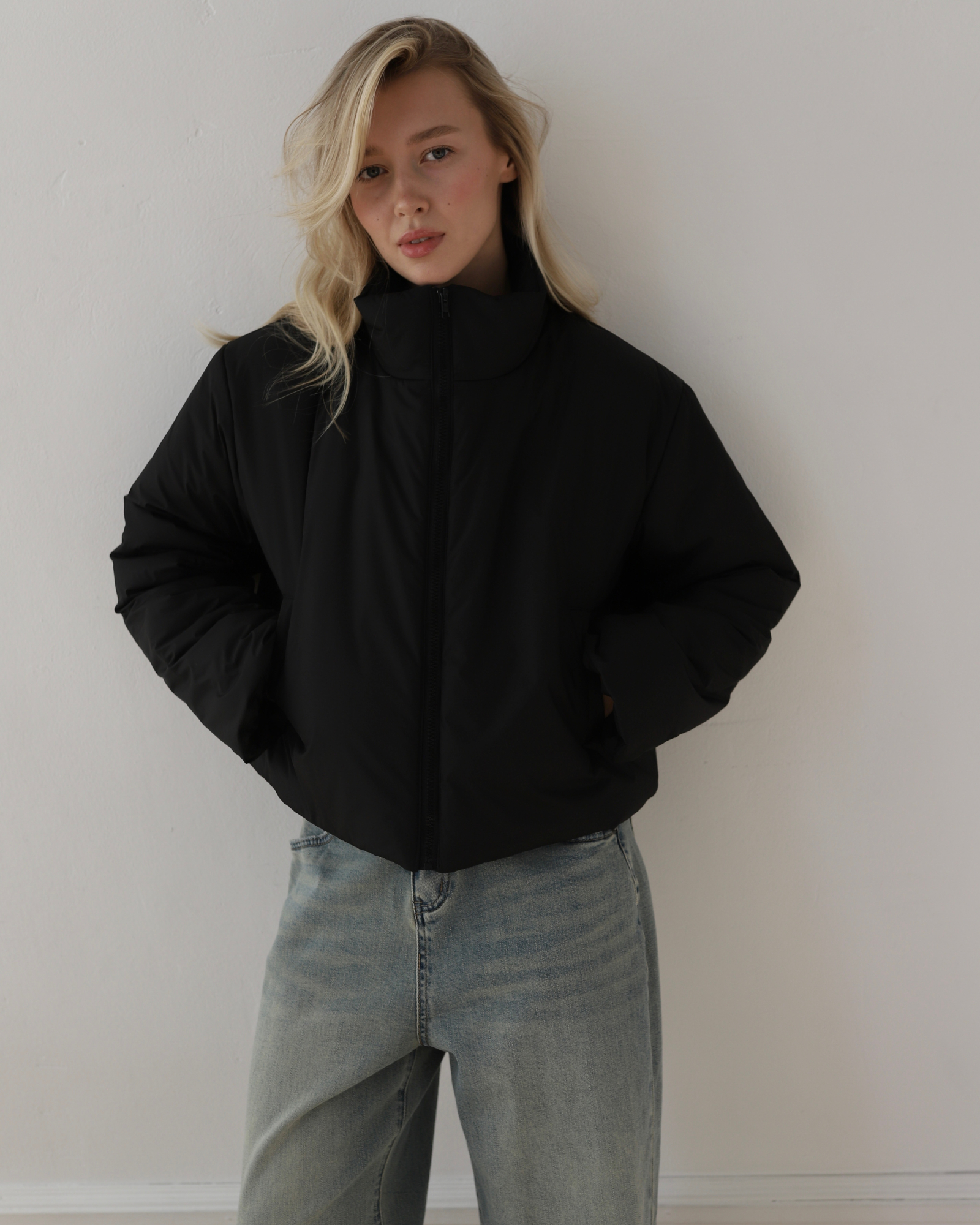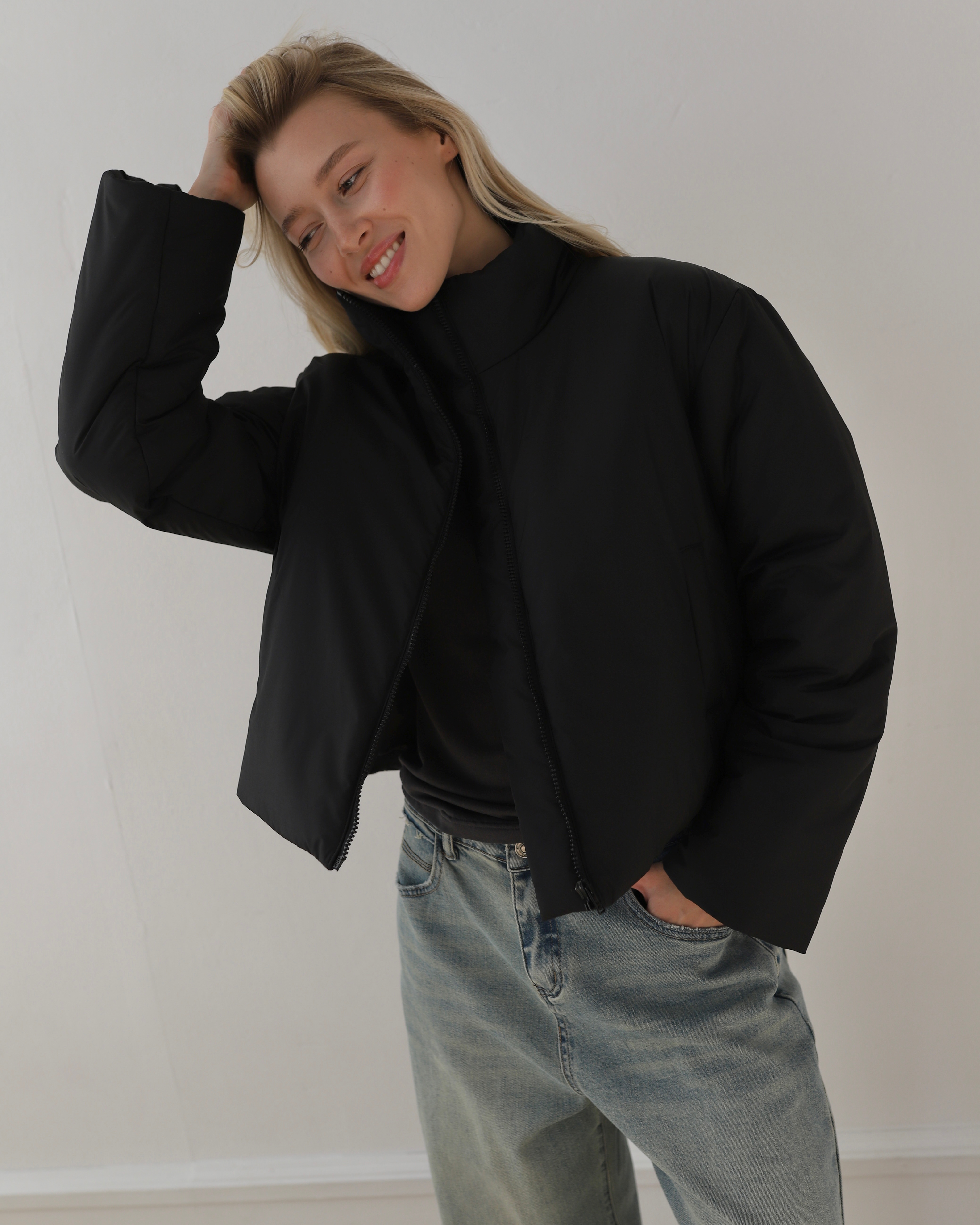Чёрная укороченная куртка — стильный и удобный элемент гардероба. Подойдёт для создания повседневных образов. Модель отличается лаконичным дизайном и качественной фурнитурой.