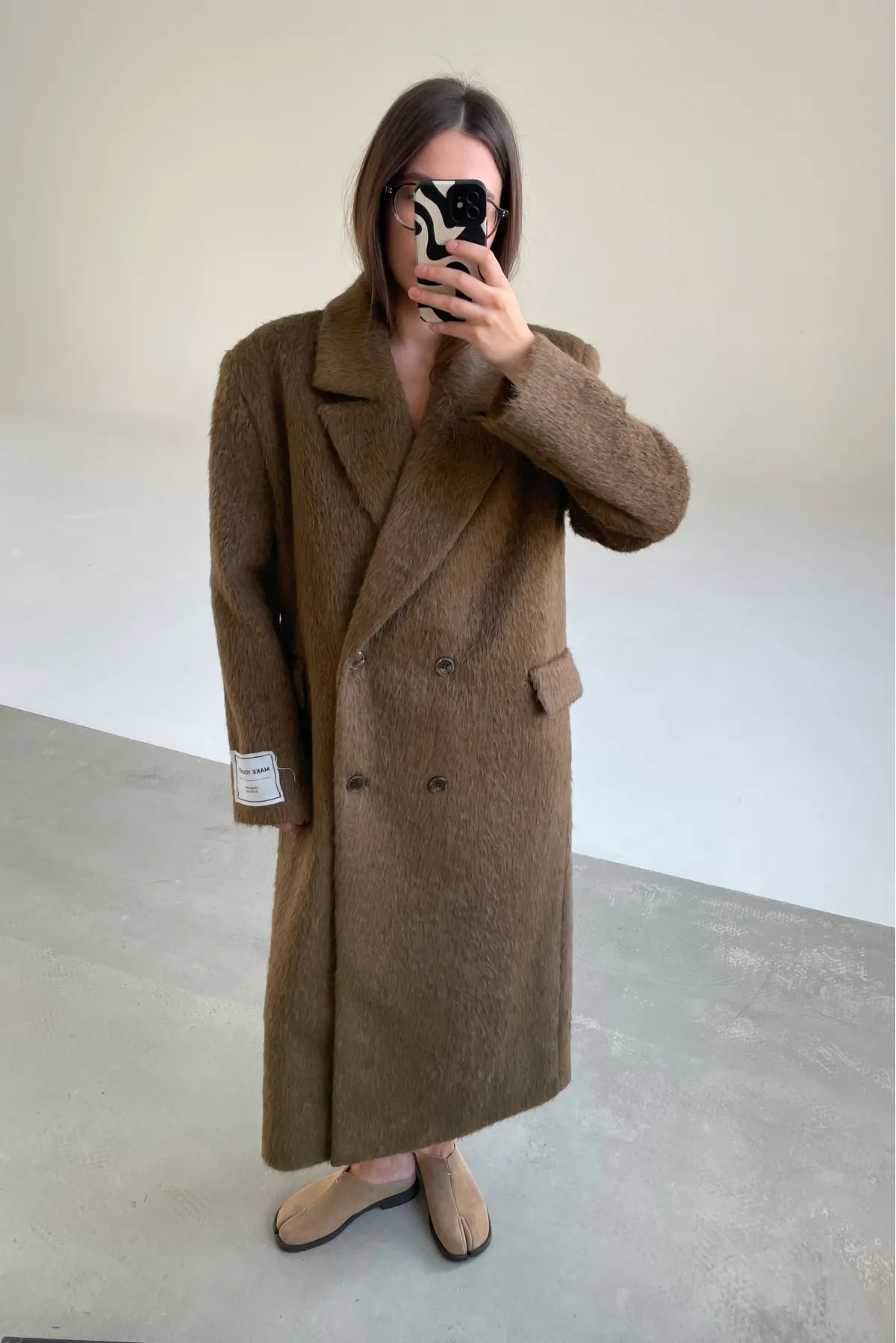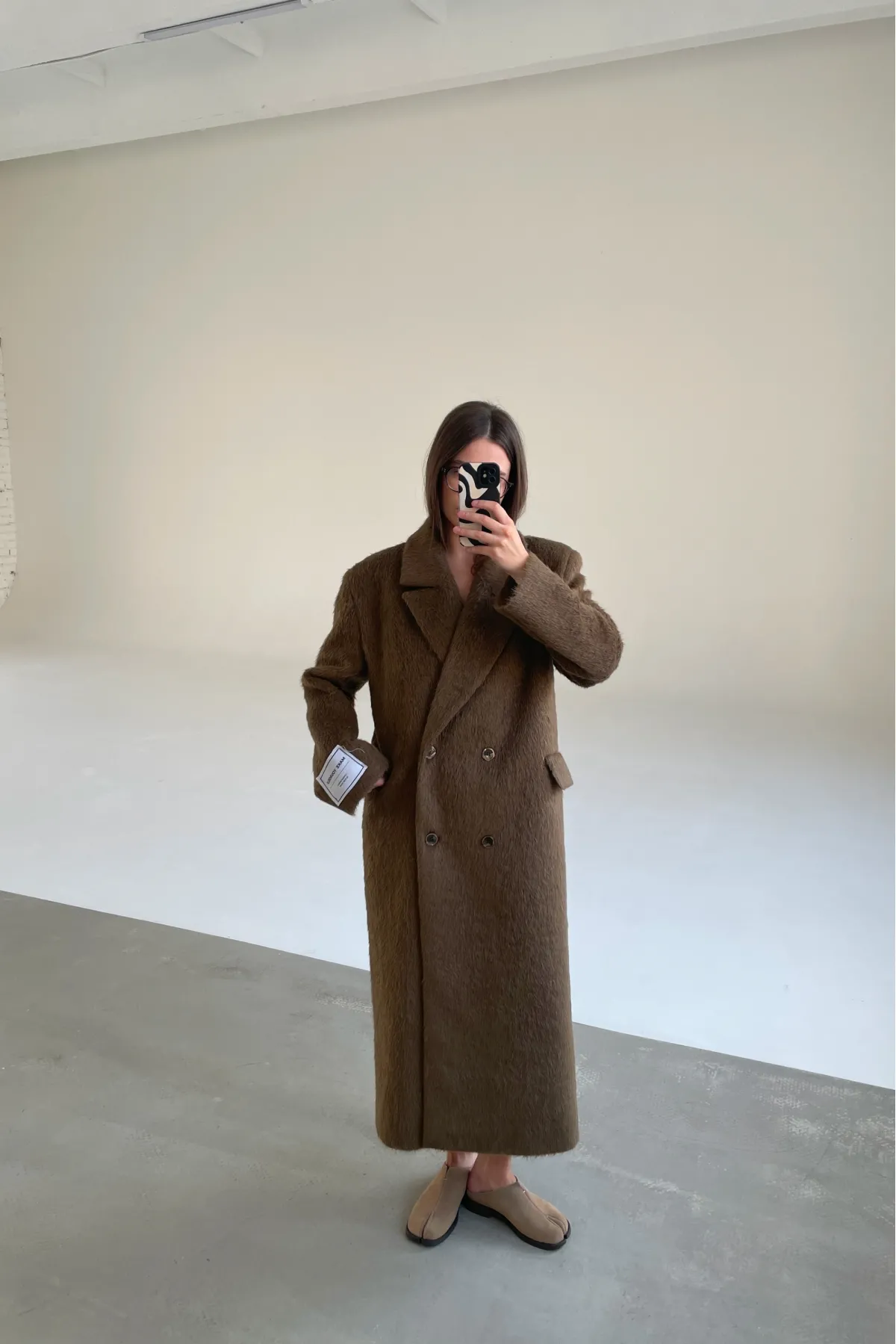 Широкие плечи подчеркивают актуальный тренд на силуэт оверсайз, придавая вашему облику дополнительное выражение и уверенность. Макси-длина пальто добавляет образу драматичности и уникальности, защищая от ветра и холода, давая возможность сочетать его с различными стилями одежды. Это пальто идеально подойдет для холодных дней, сочетая в себе комфорт и шикарный внешний вид.