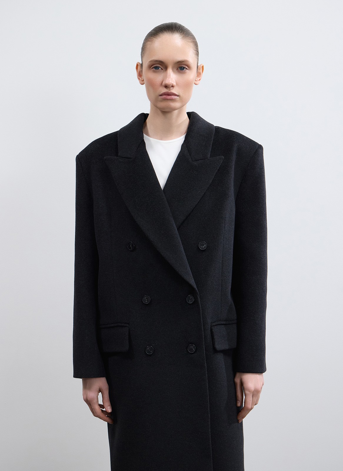 Современный объёмный крой и акцентная линия плеч создают выверенный силуэт.