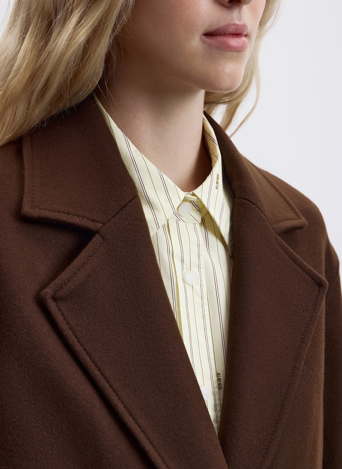 Комбинация шерсти высокого качества и нежного кашемира обеспечивает особую мягкость. Благодаря составу фактура пальто приобретает благородный лоск и блеск.
