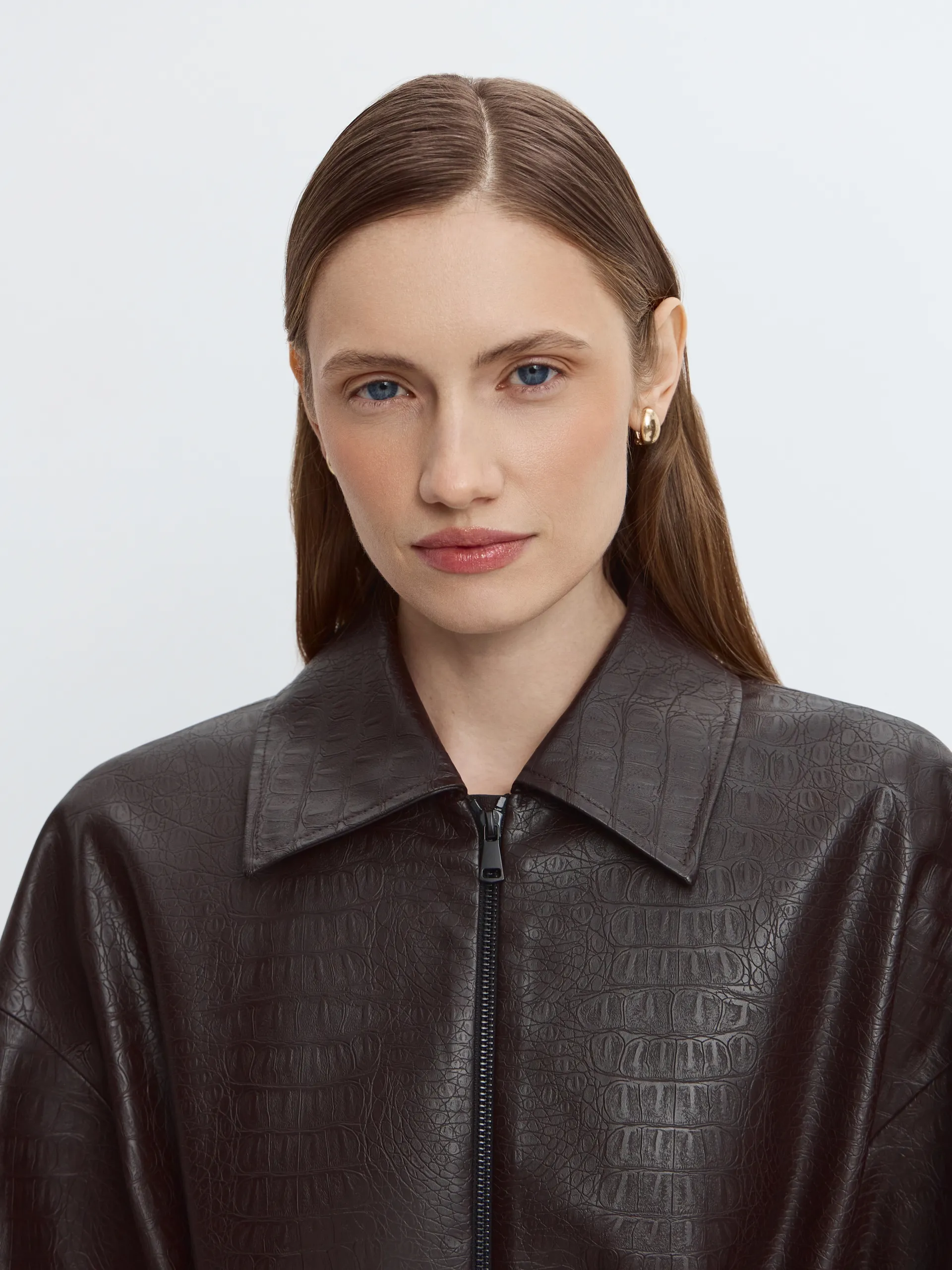 Плащ из фактурной экокожи