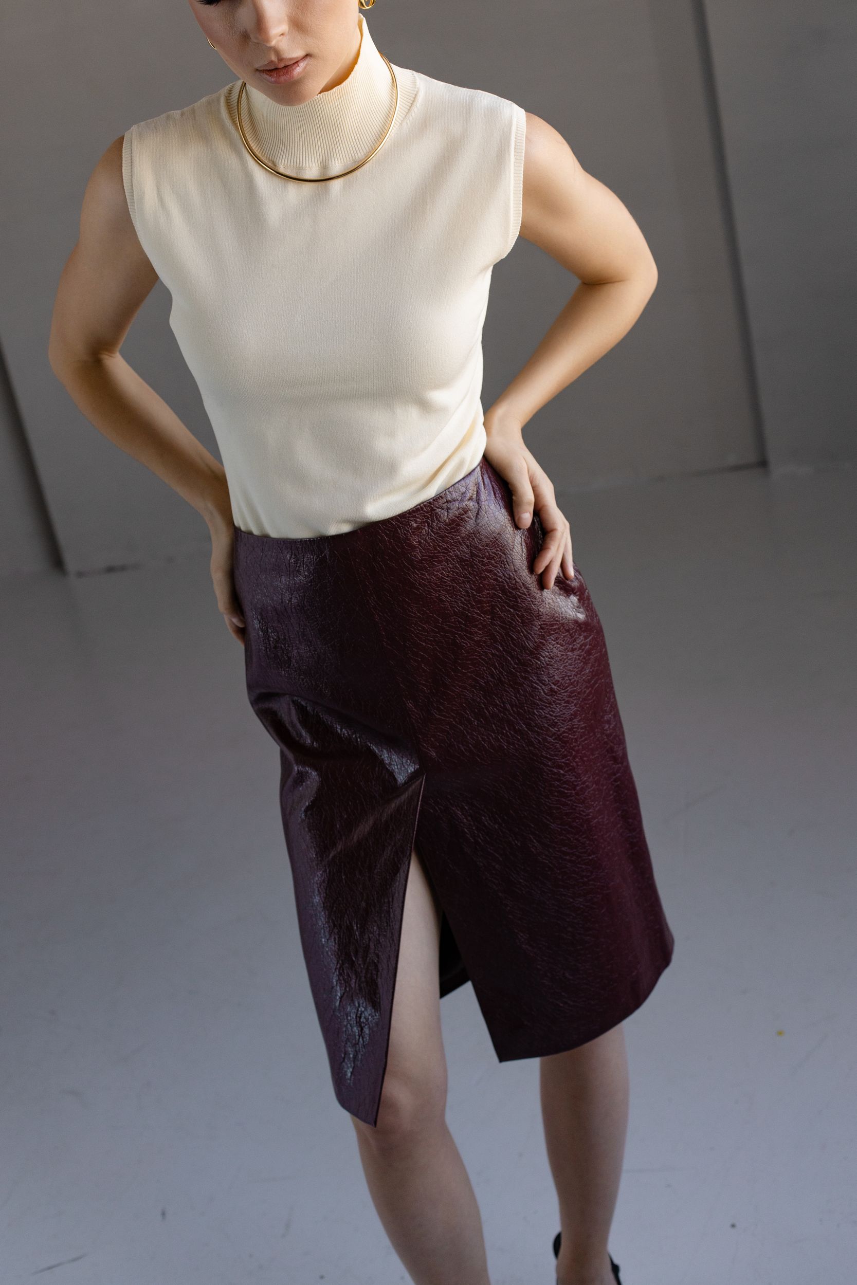 Юбка из экокожи с разрезом миди