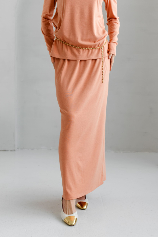 M (подходит на M-L/44-46): длина по боковому шву - 100 см, обхват по талии - 64-88 см, обхват по бедрам - до 110 см, высота разреза от талии - 54 см.