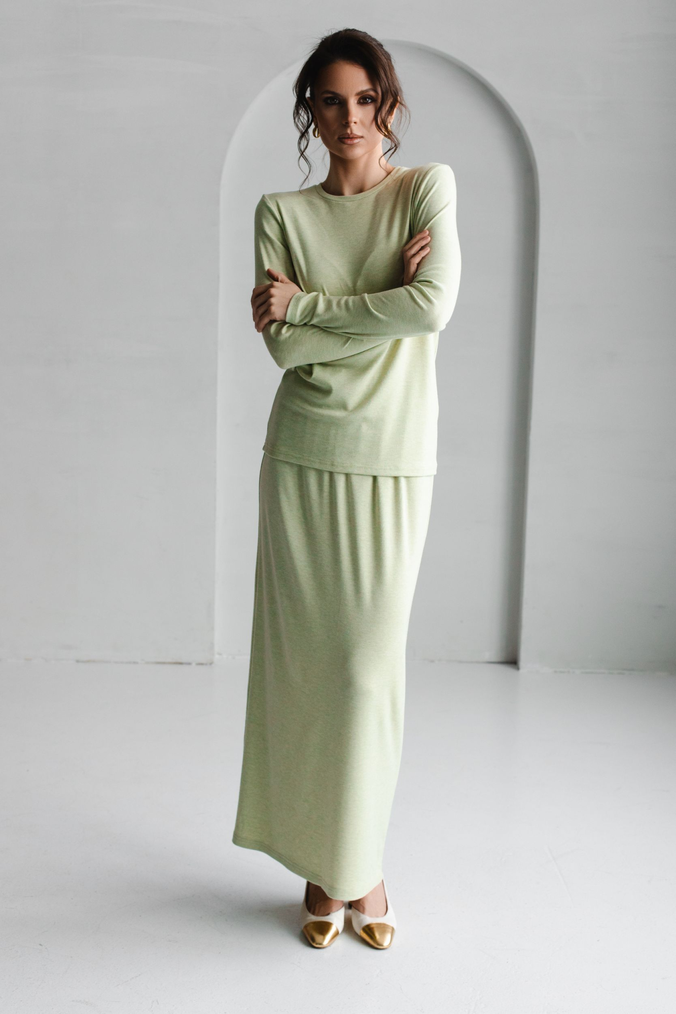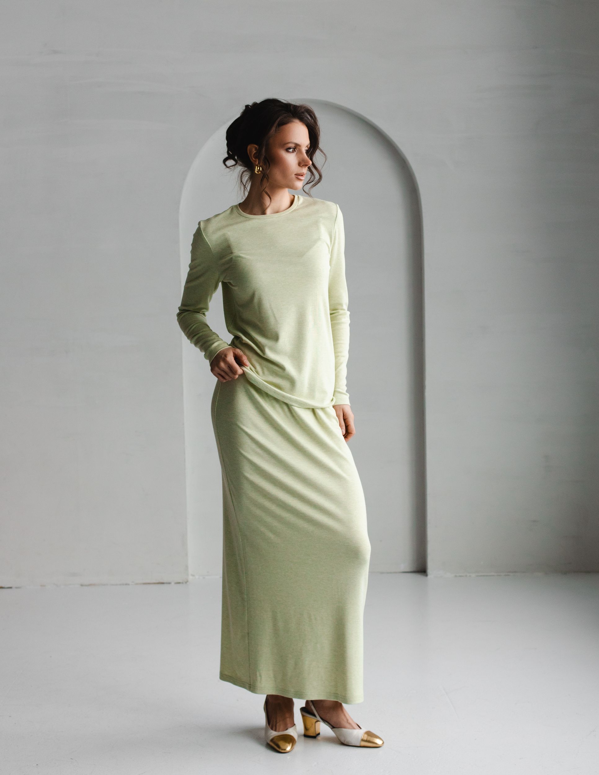 Юбка из невесомого трикотажа в длине макси.