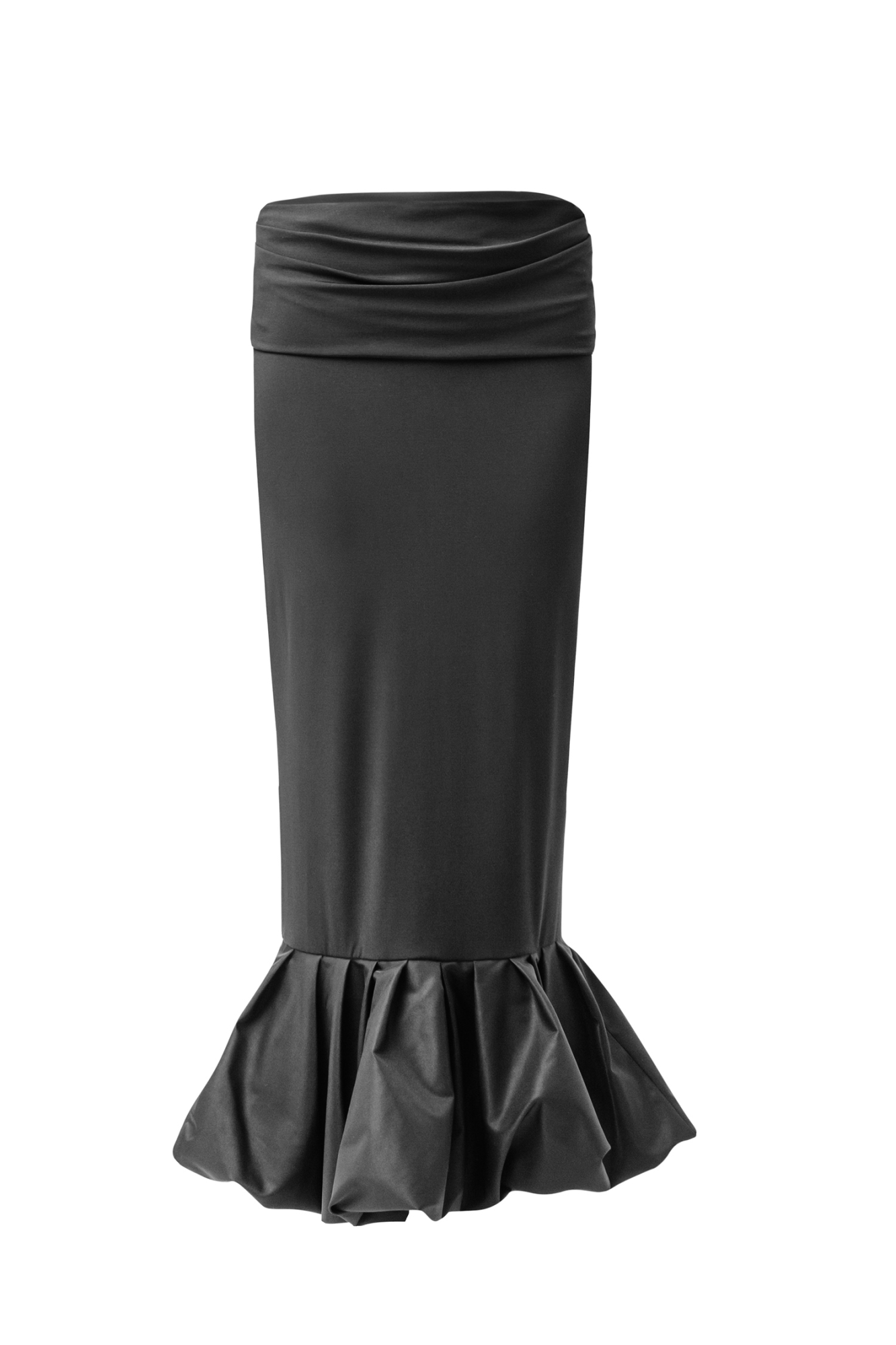 Юбка с объемным воланом по низу подойдет для любительниц разбавить свой образ необычной деталью.