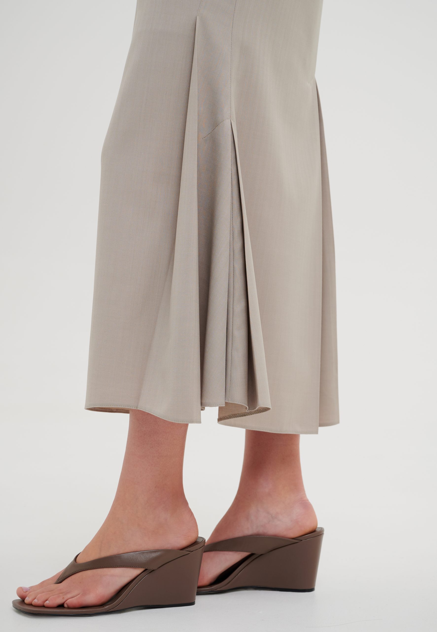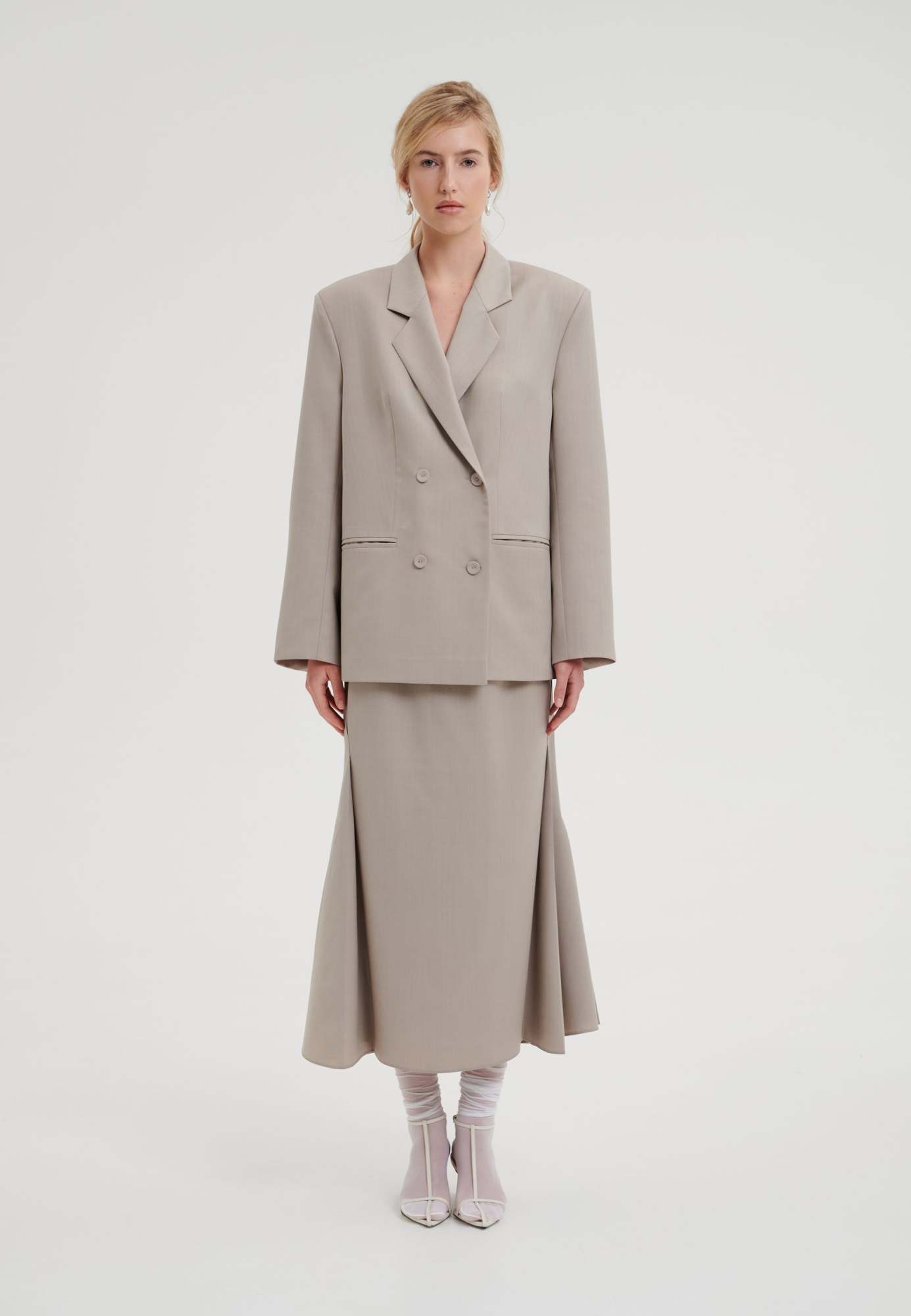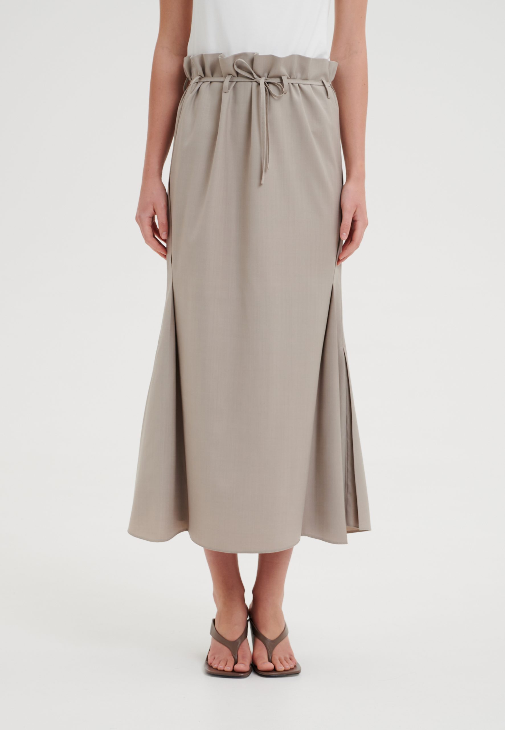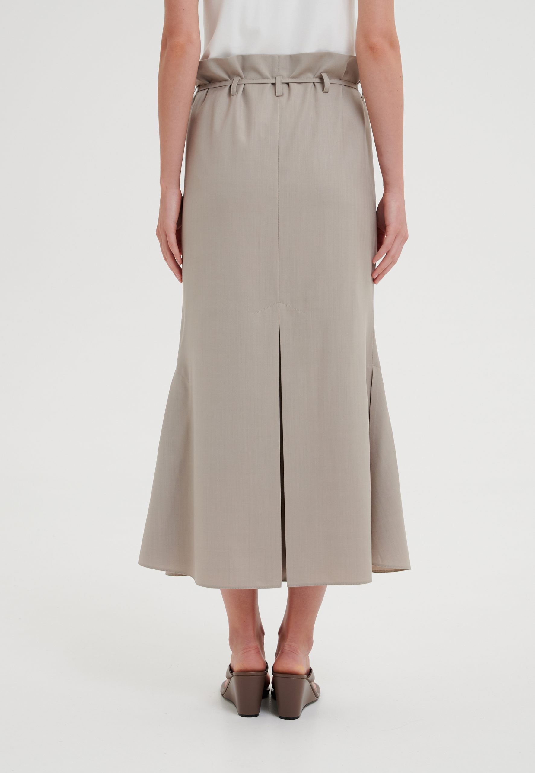 Юбка годе на кулиске – современная интерпретация классического костюма. Изделие выполнено из костюмной шерсти в оттенке тауп с паттерном “елочка”, которая добавляет фактуру и глубину ткани. Юбка годе на комфортном свободном поясе – идеальный баланс женственности и комфорта. Мягко облегает бедра и красиво раскрывается книзу, создавая изящный силуэт. Идеален как для повседневных образов, так и для более официальных.