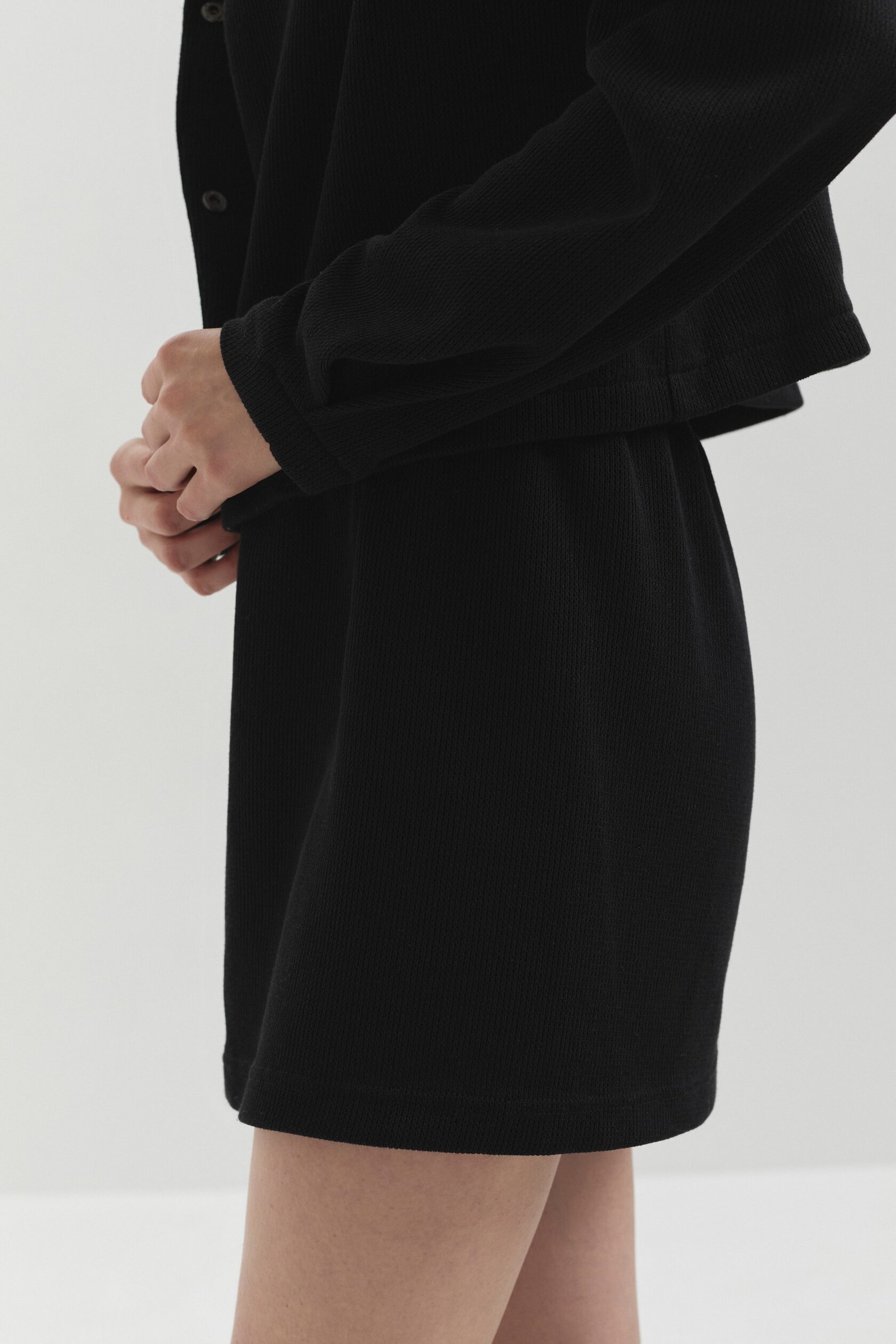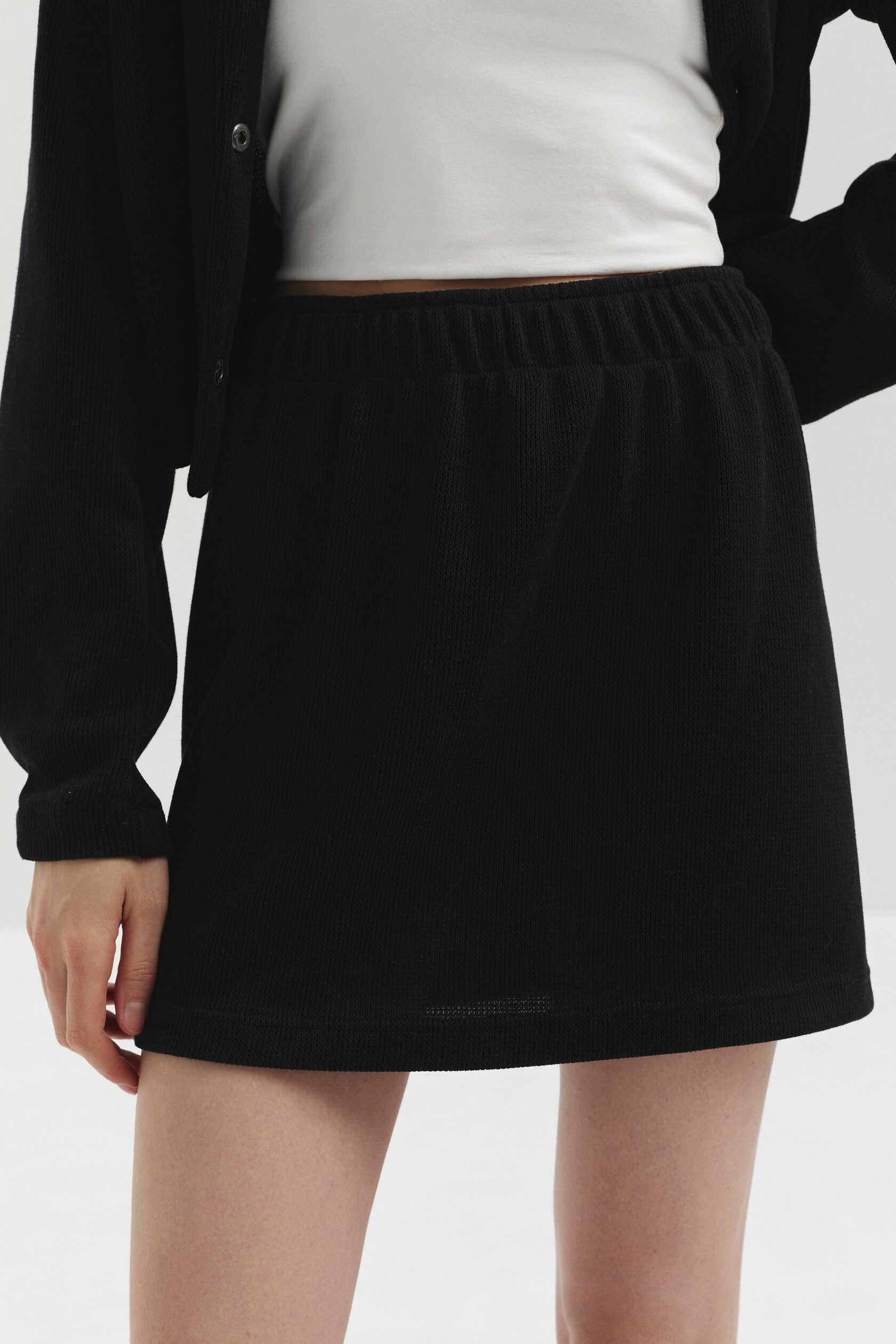 Юбка из фактурного трикотажа — лёгкая и комфортная, идеально подходит для активных дней. Свободный крой обеспечивает удобство, а выразительная текстура материала придаёт образу интерес и глубину.