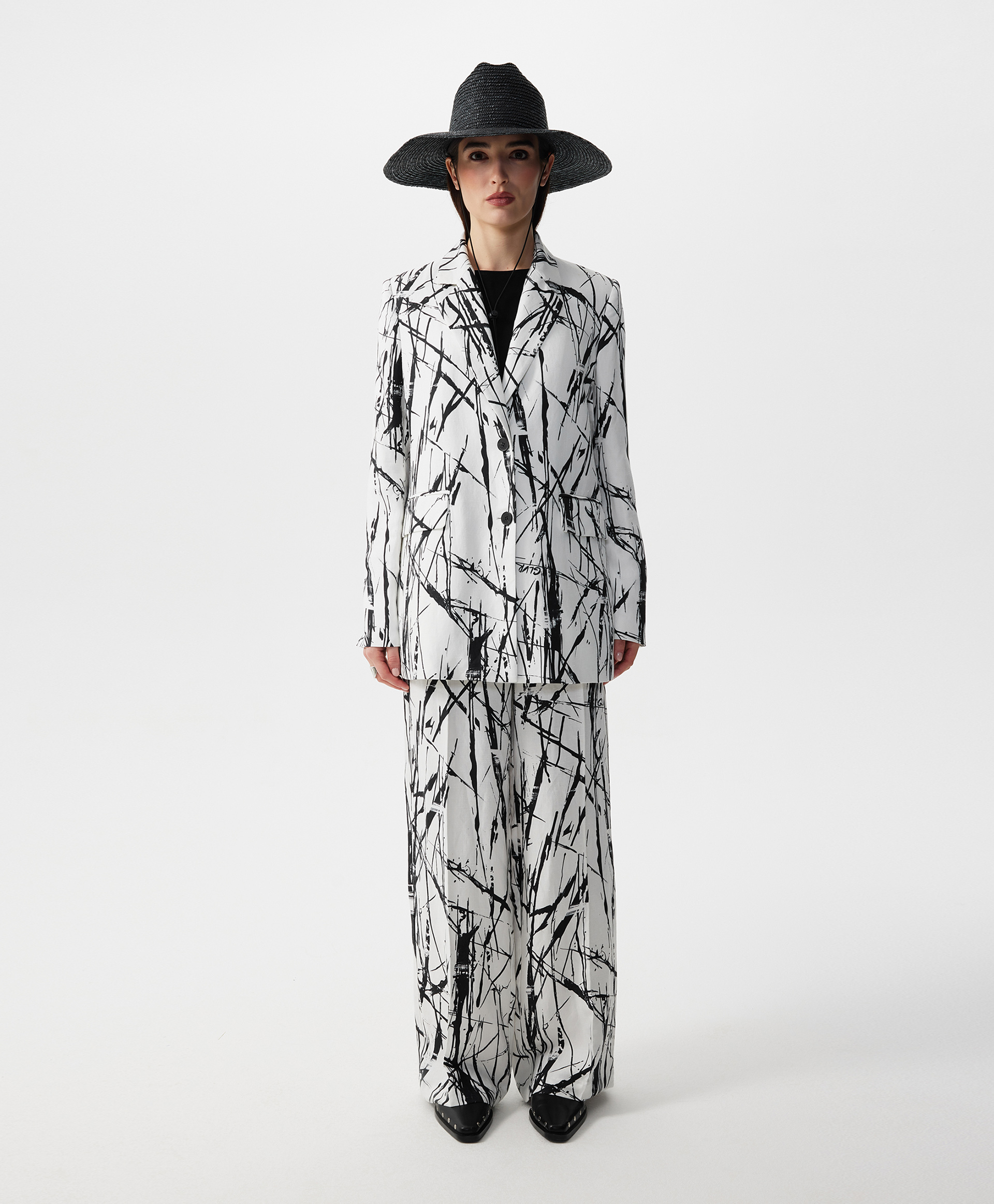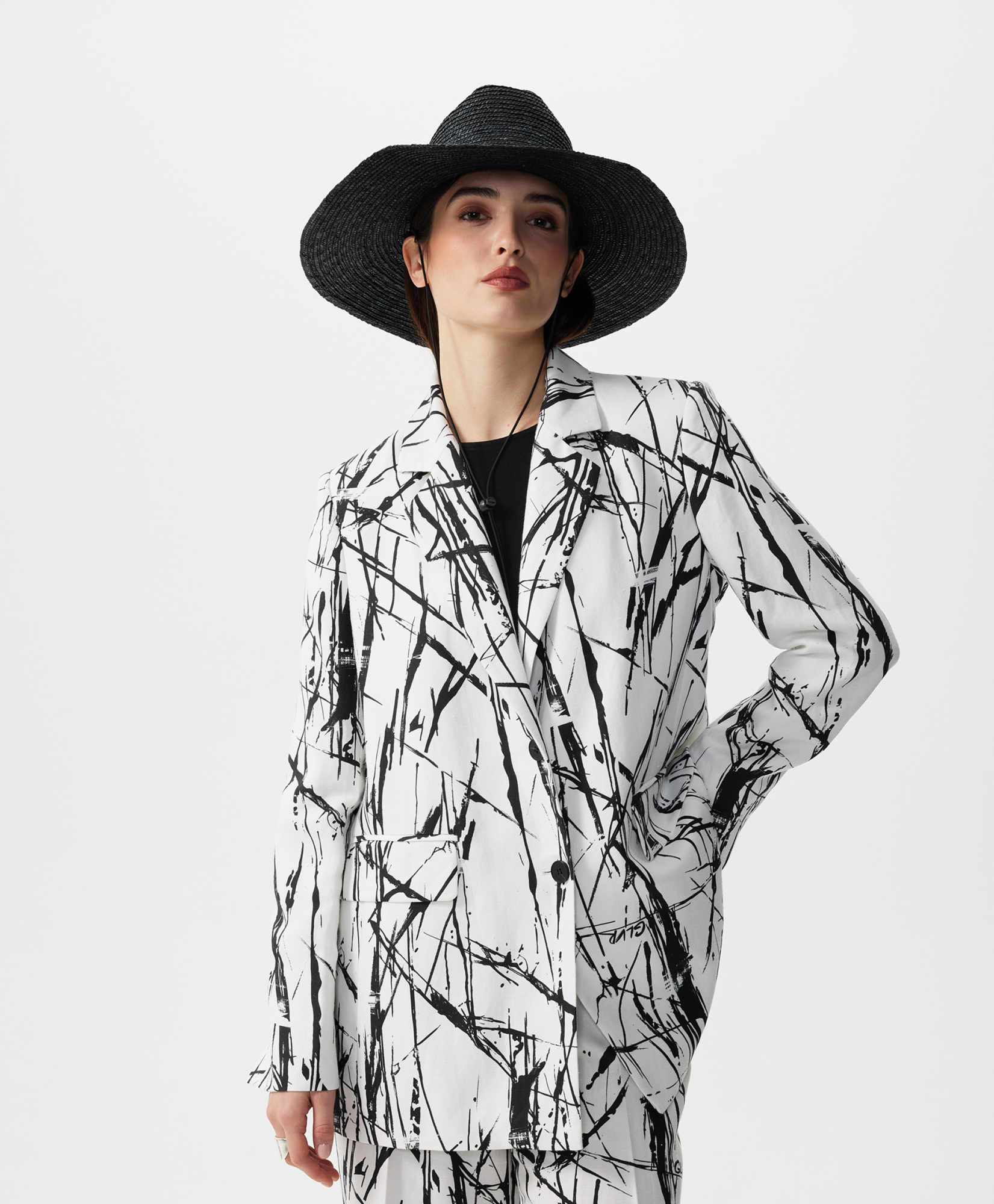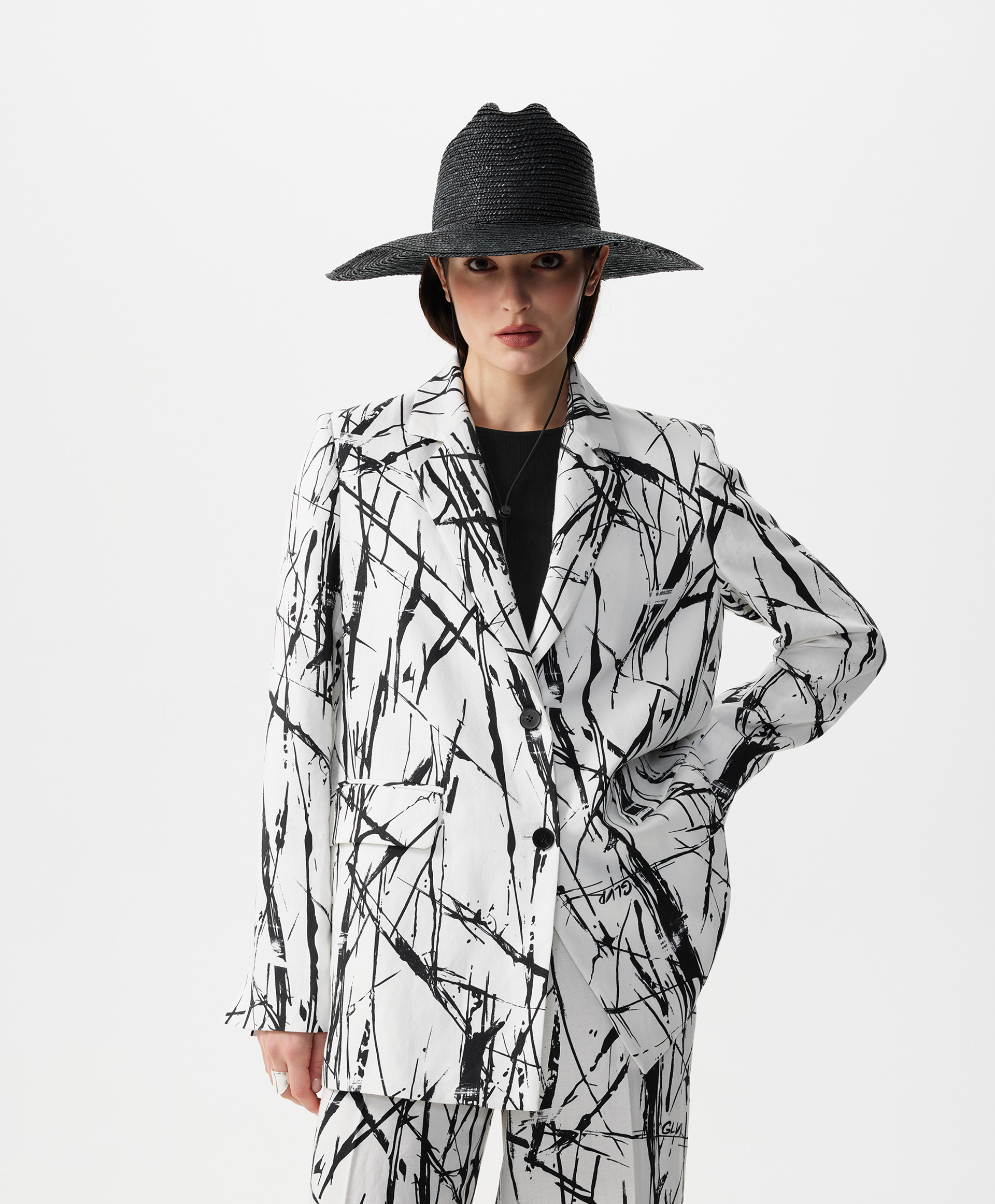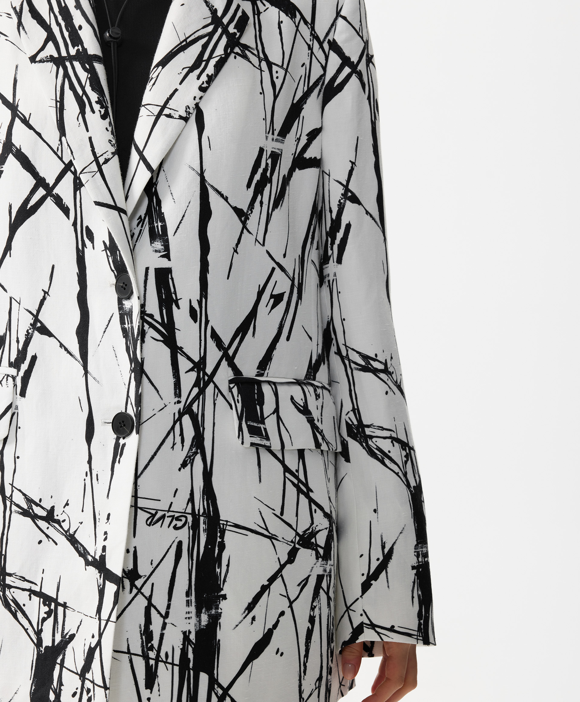 Стильный однобортный пиджак силуэта умеренный оверсайз сочетает в себе элегантность классики и новые идеи, продиктованные трендами. Смесовой состав из вискозы и льна придает пиджаку шик и благородство натуральной льняной вещи с приятной шероховатой текстурой, при этом существенно снижает свойственную льну сминаемость. Рисунок ткани, вдохновленный дикой черной орхидеей, напоминающий, одновременно, и плотные высокие стебли, и тонкие воздушные корни, и легкие молодые побеги, завораживает, интригует и удерживает внимание. Пиджак имеет шелковистую вискозную подкладку на полочках и полуподкладку спинки, создающую комфортное скольжение при взаимодействии с вещами первого слоя в плечевой зоне. Прорезные карманы с клапанами и карманы в швах создают удобство в эксплуатации вещи. Высокая шлица на спинке, поддержанная аккуратными шлицами на рукавах, придает пиджаку неформальный вид. И с юбкой, и с брюками, и с платьем он будет выглядеть интересно, красиво завершая любой комплект. Пиджак застегивается на две пуговицы.