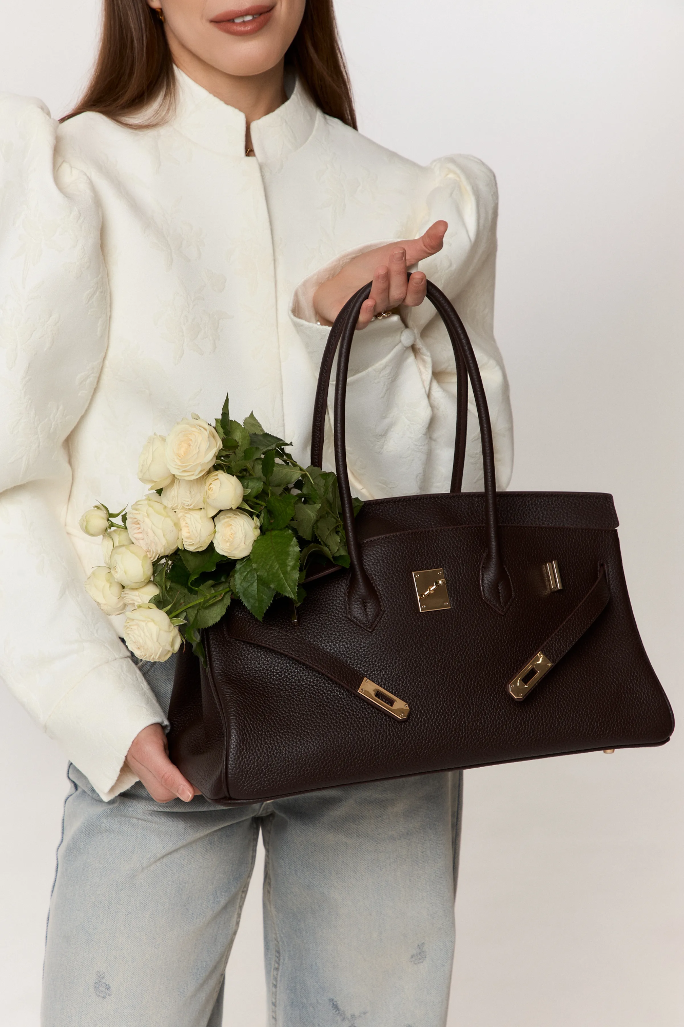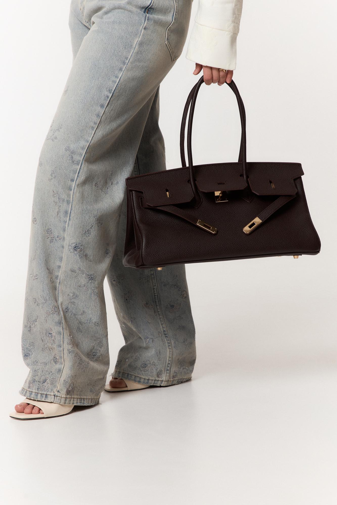 Сумка выполнена из натуральной зернистой кожи. Имеет удобную форму, которая будет прекрасно смотреться в повседневной носке.