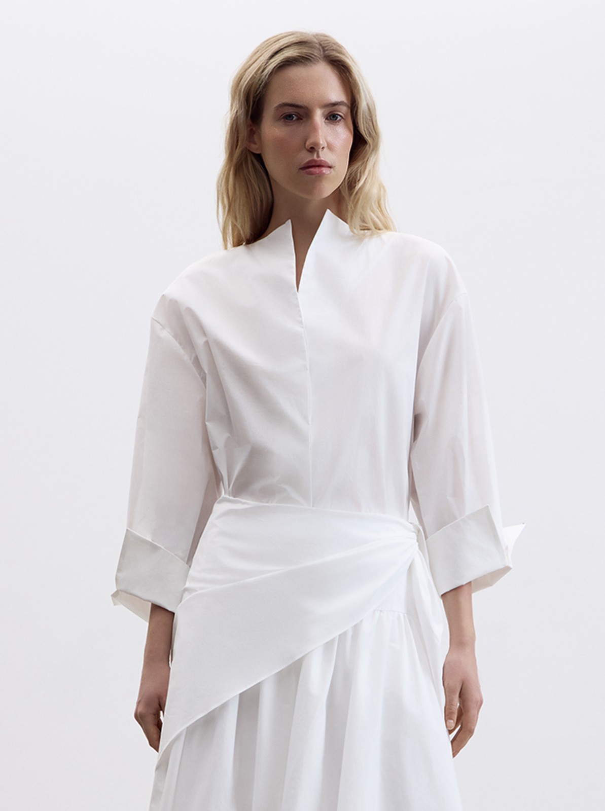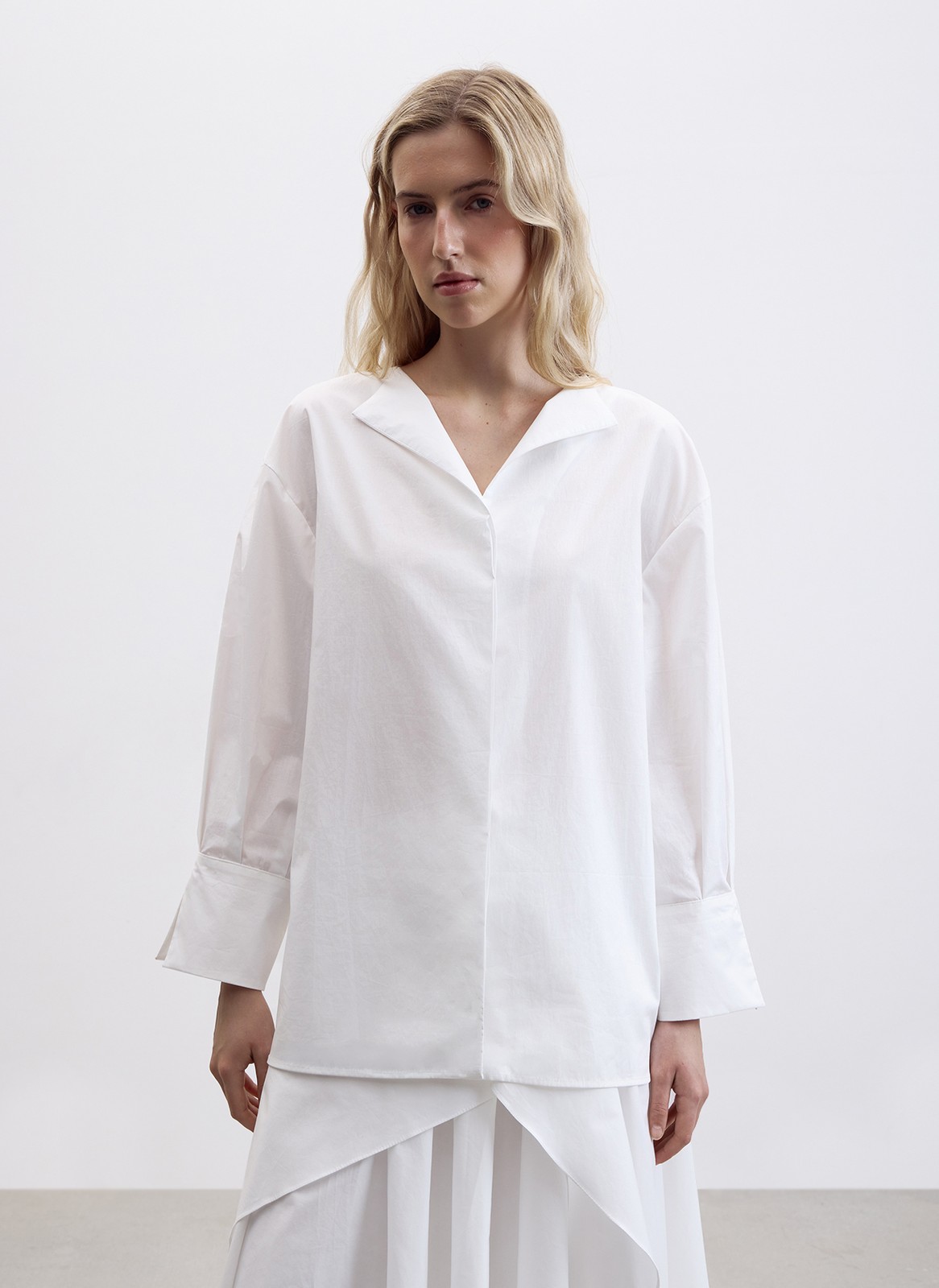 Рубашка из хлопка с шелковистой отделкой идеальна для женственных образов.